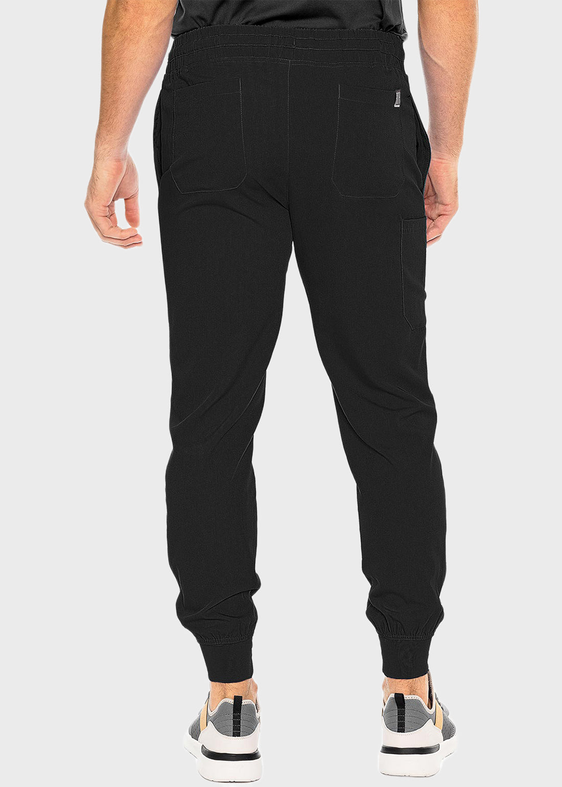 Moto-like fitting, this jogger has an elastic waistband and knit ankle cuffs. Pairs well with the Cadence top and T-shirt. Super comfortable waistband Outer waist ties Zip fly Cargo pocket Jersey Knit ankle cuffs. Inseam: 31 1/2"