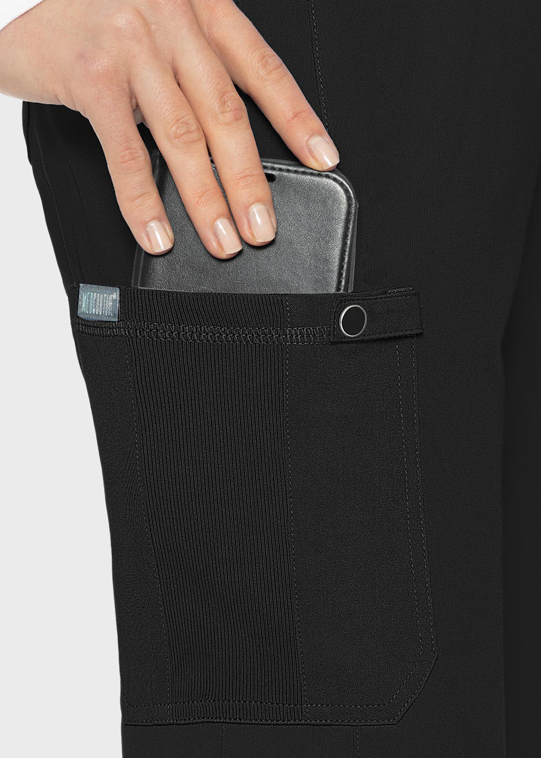 Dress up effortlessly to work in Med Couture Touch Yoga Petite Pant. With a relaxed jersey knit waistband for comfort, straight leg with side vents that look impressive and aids in movement and two side and two cargo spacious pockets, you get absolute functionality on the go.