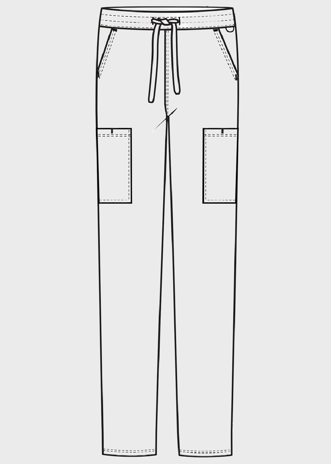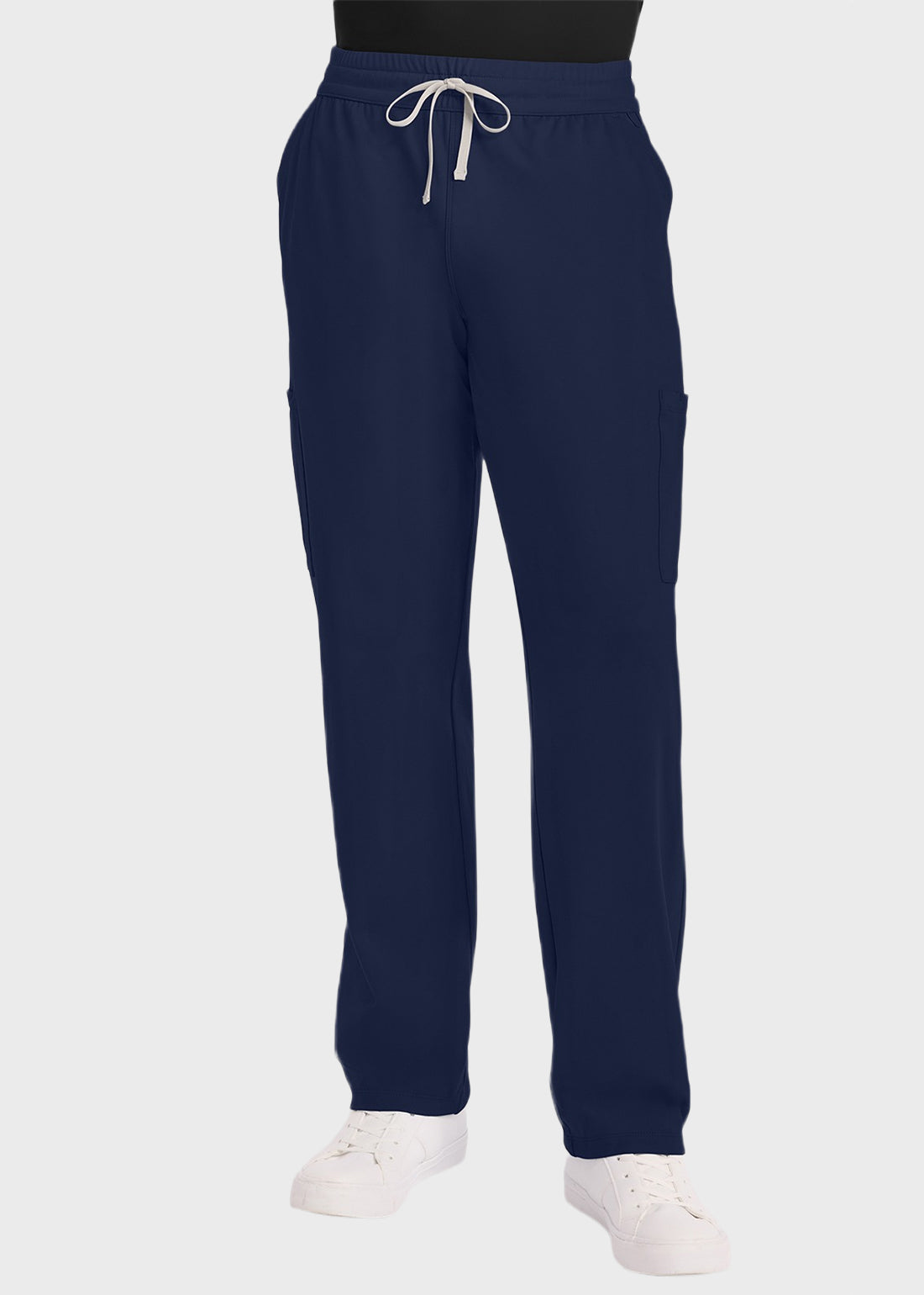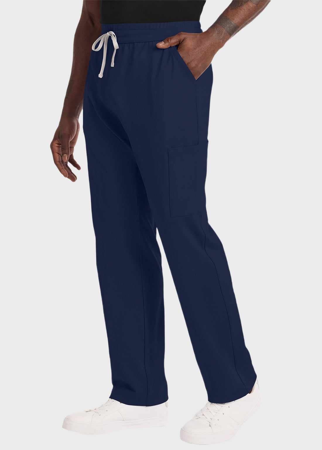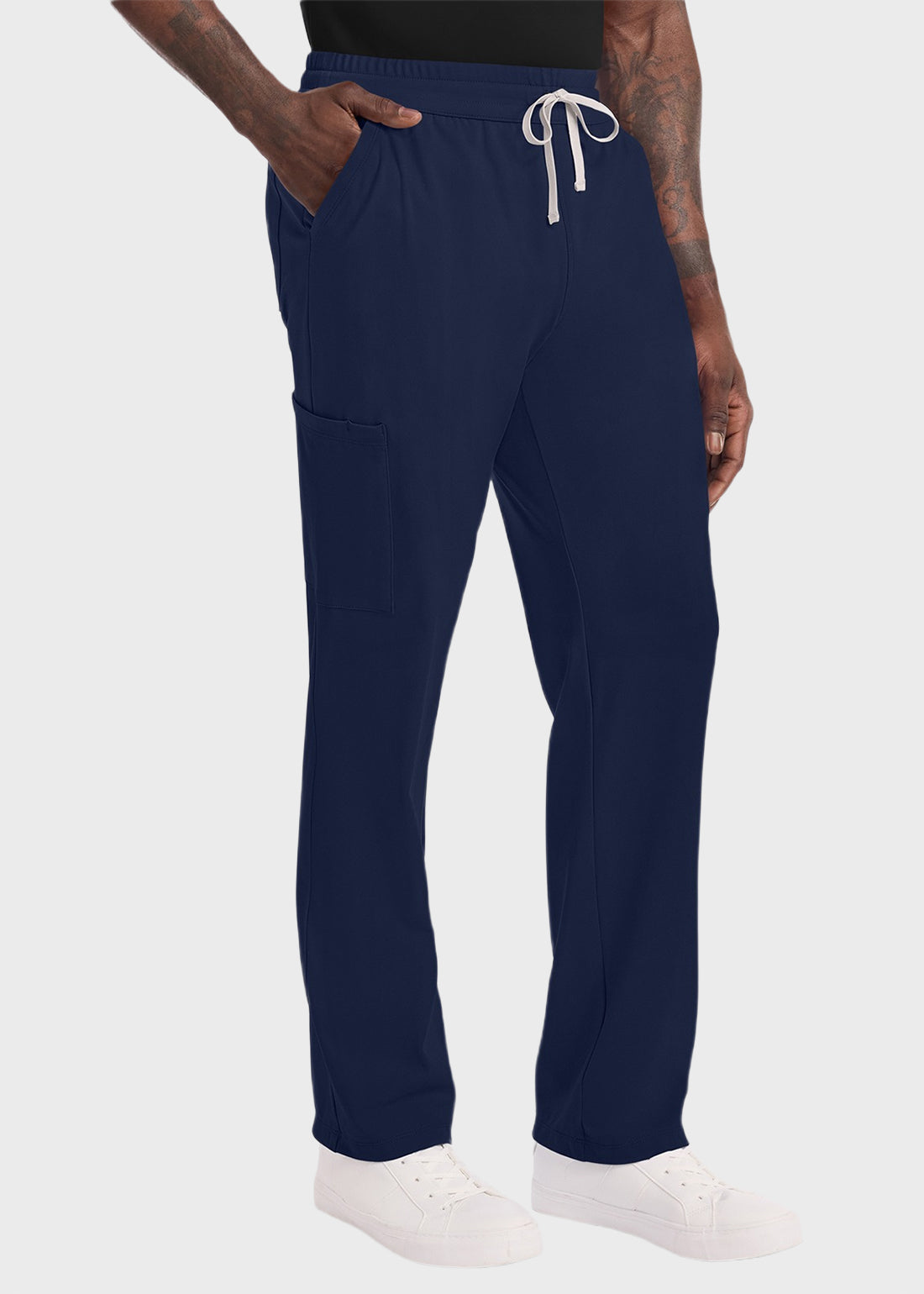 Cherokee Achieve Men's Straight Leg Pant Built for performance and comfort, these straight leg pants feature super-stretch fabric that moves with you all day. With a drawstring waist and five functional pockets—including angled slit, back patch, and dual cargo pockets—they're a dependable choice for any shift.