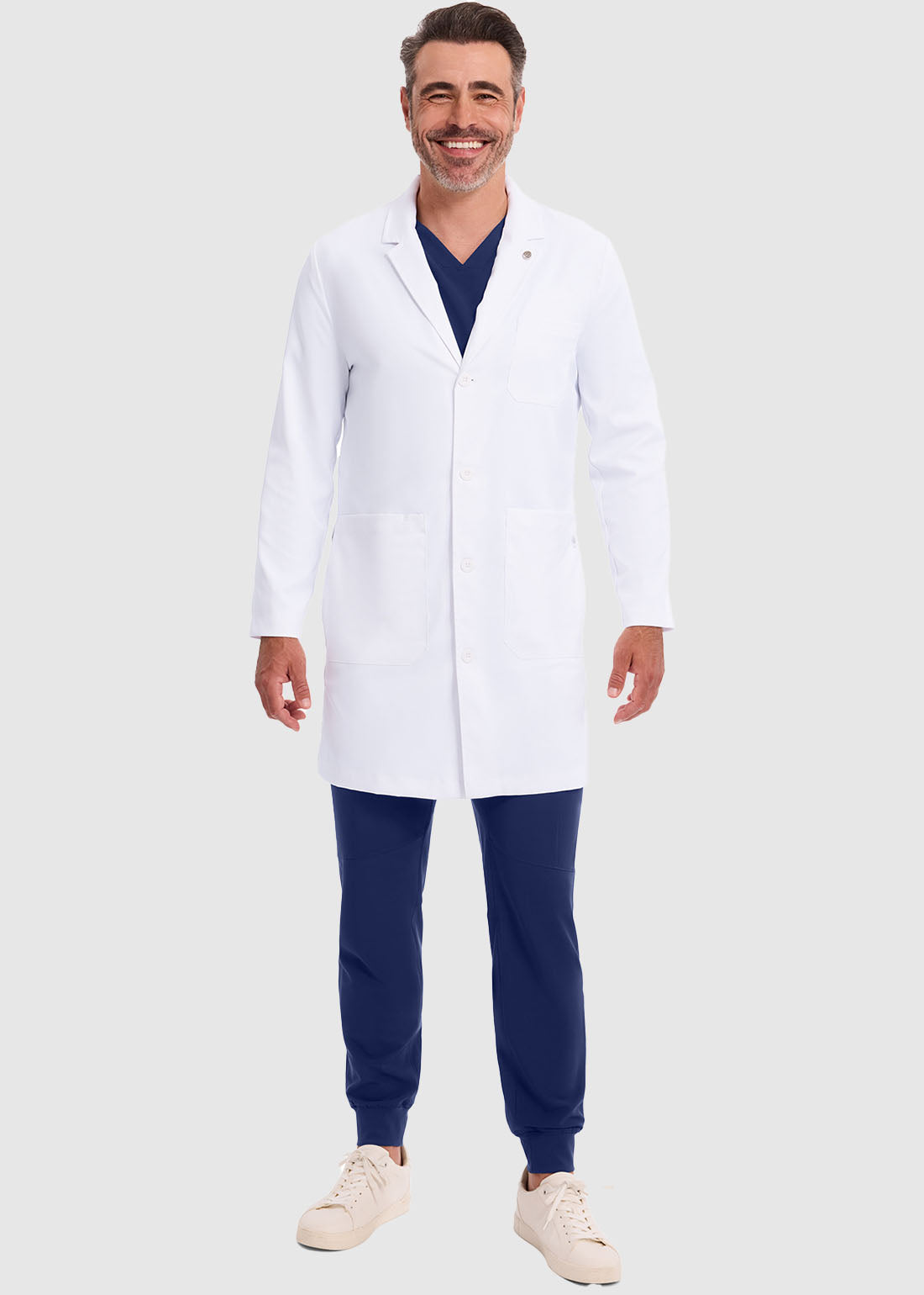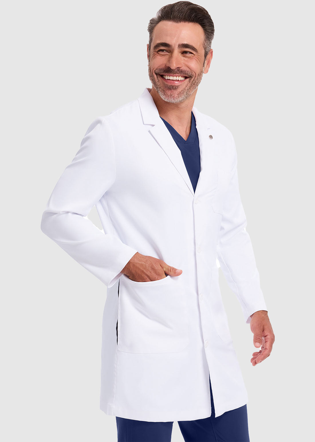 Make an impression in 5151 Luke Lab Coat. The functional lab coat features a classic notched lapel, pocket access slits at side seams, back waistband and back vent for performance. Completed with three outside pockets with cell phone pockets and two inside pockets, the lab coat is a must have.