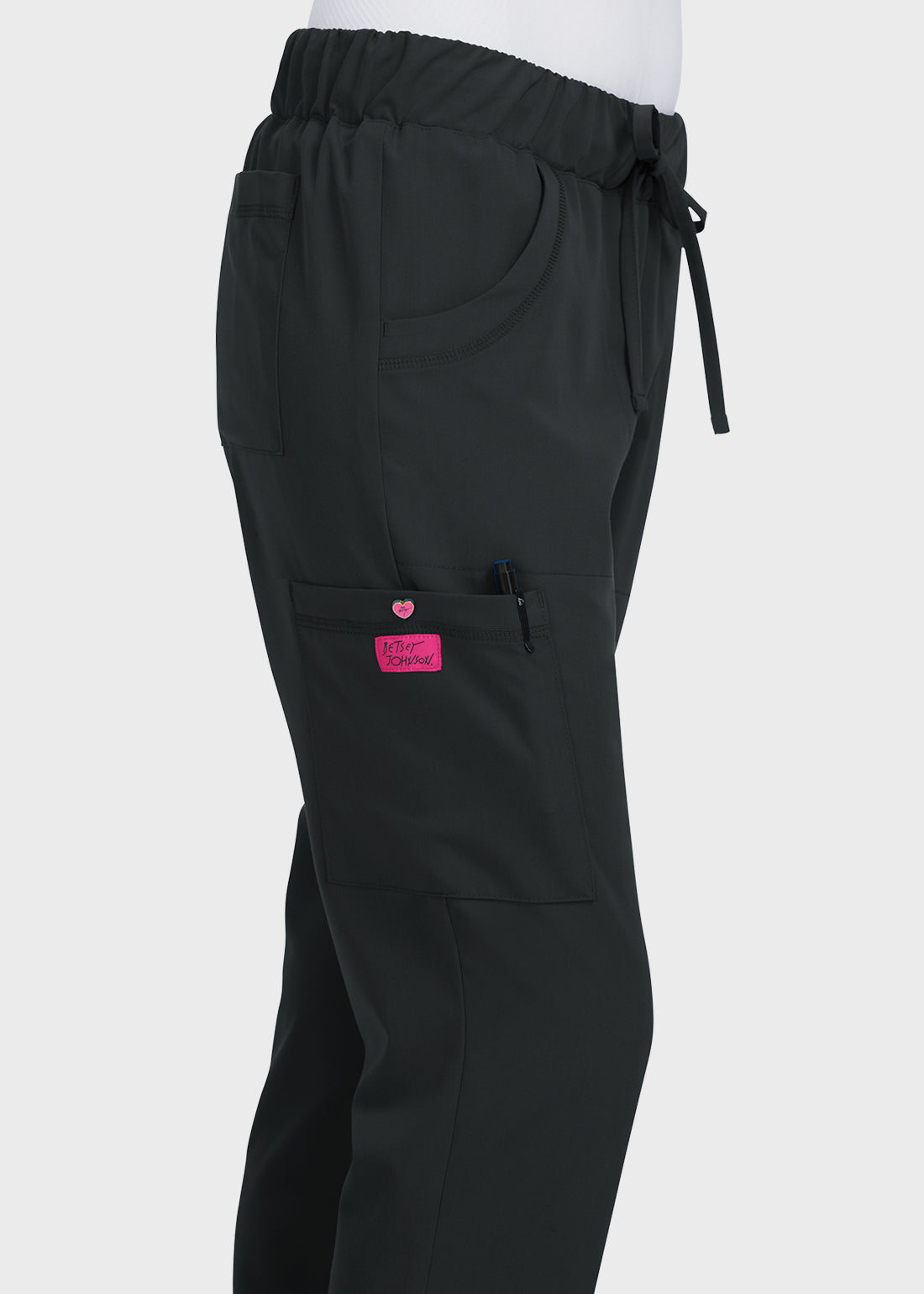 Be comfortable and feel great in Koi B700 Betsey Johnson Women's Buttercup Scrub Pant. These swoon worthy pants from Betsey Johnson feature an elastic waist with drawstring ties for comfort. With print facing at interior waist, slim fit and side slits at hem for a flattering fit and two front pockets, two side pockets with metal snaps and two back pockets, you get quality with comfort.