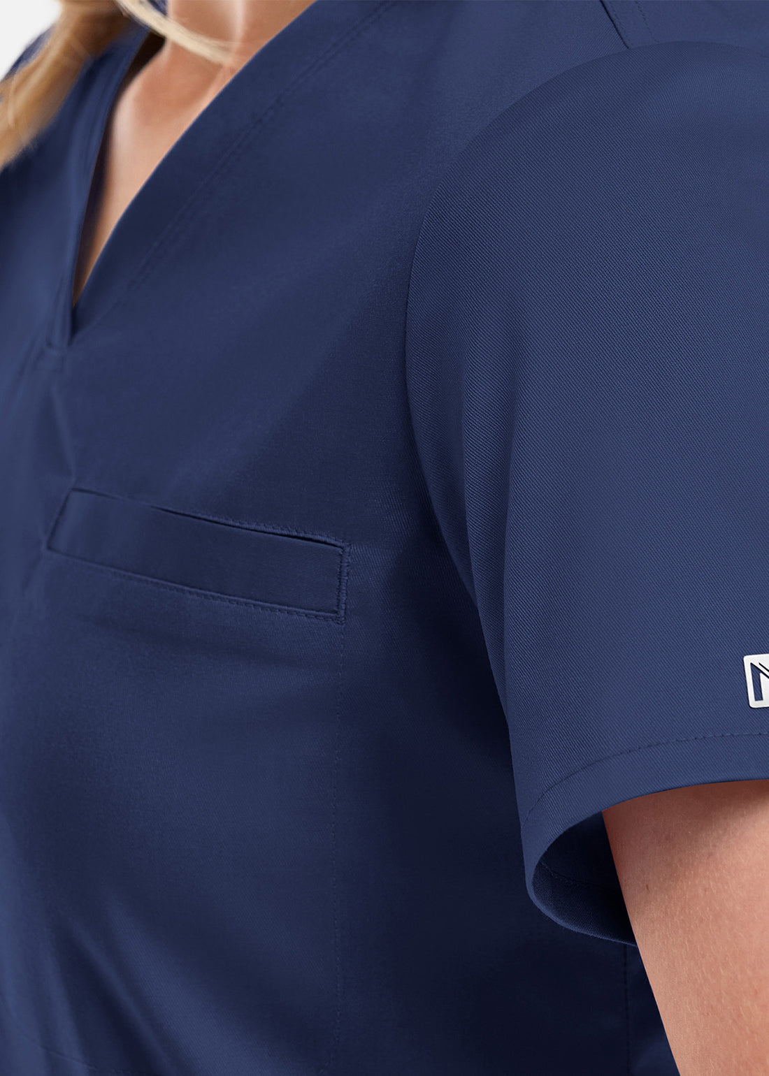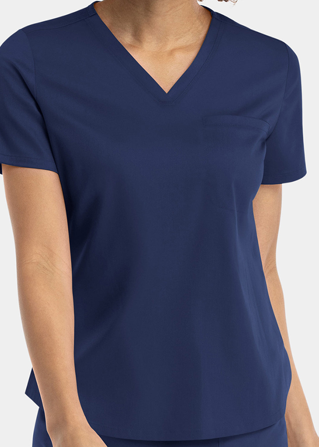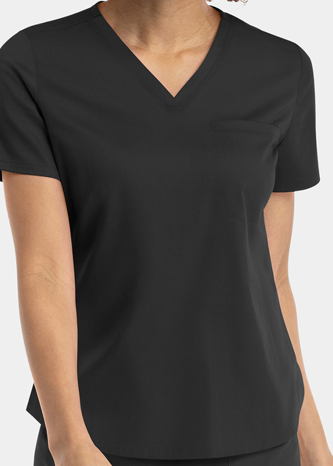 Dress up to the nines with Maevn Matrix 3503 V-neck Tuck-In Top. The trendy women's V-neck tuck-in top comes with a one single welt chest pocket back shoulder panel and back darts for added style and shape and side vents ensures functionality and comfort on the go.