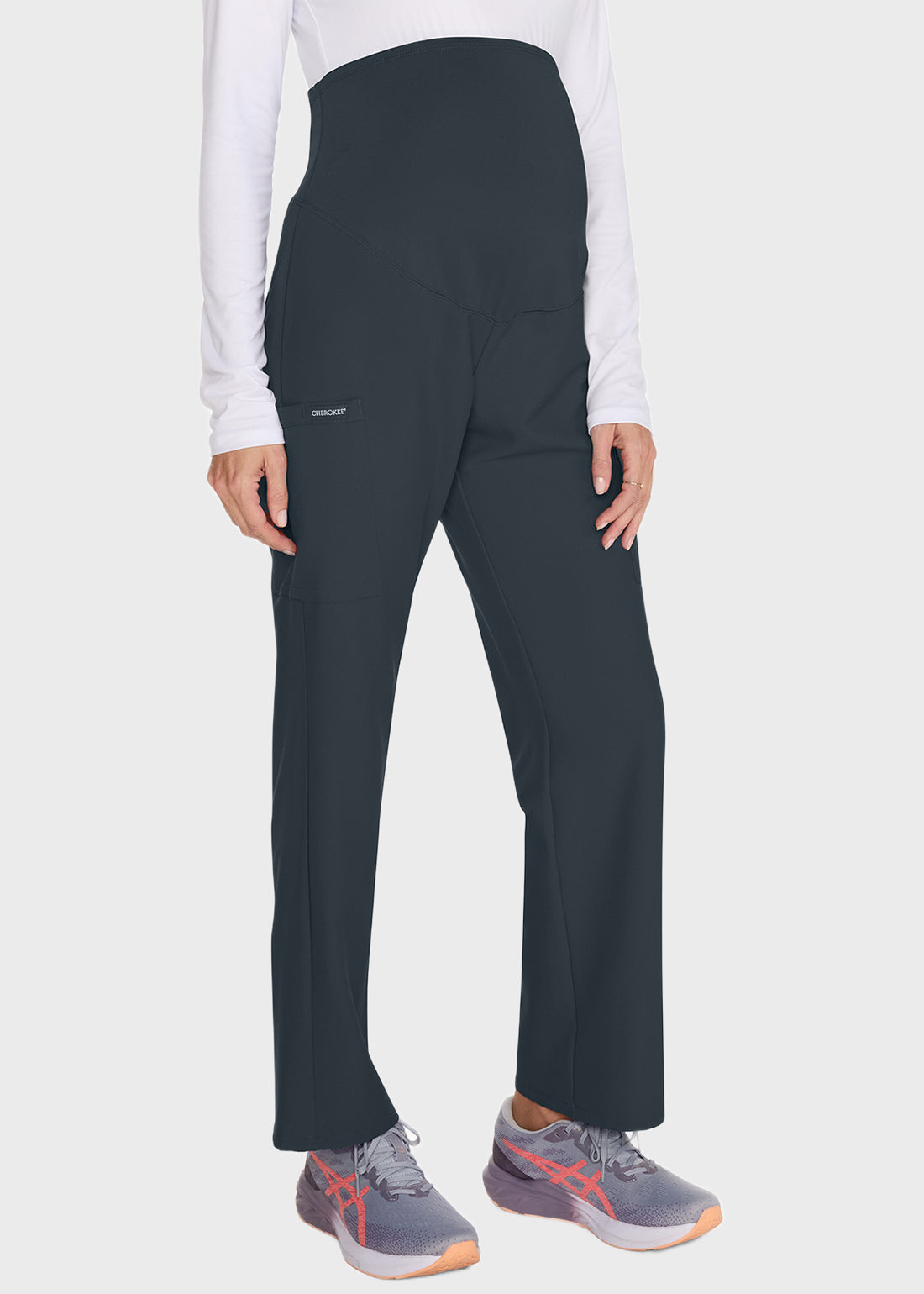 Cherokee Women's Maternity Straight Leg Tall Pant is designed for comfort and support with a super-stretch waistband that grows with you. Featuring a modern classic fit and three pockets—including back patch and dual cargo pockets—it offers both style and functionality for your workday.
