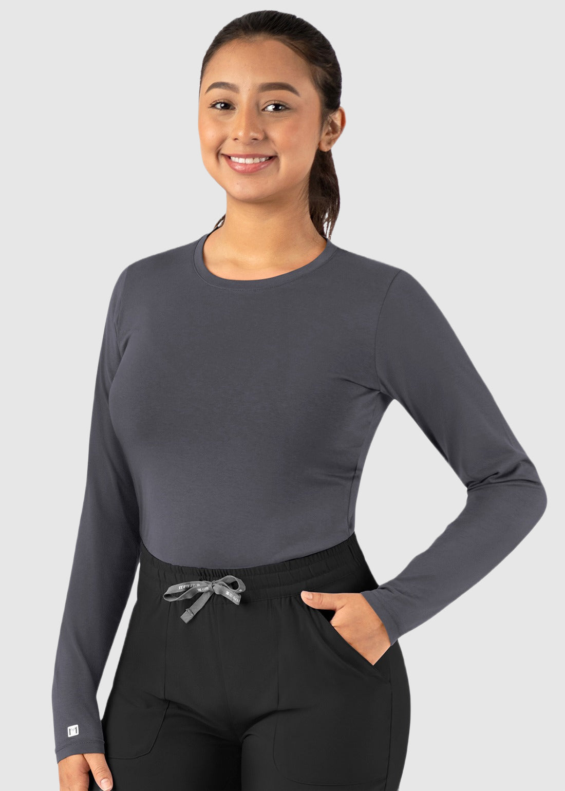 This underscrub tee is incredibly soft. I wear it under my scrubs, and it keeps me warm without being too thick. Perfect for layering
