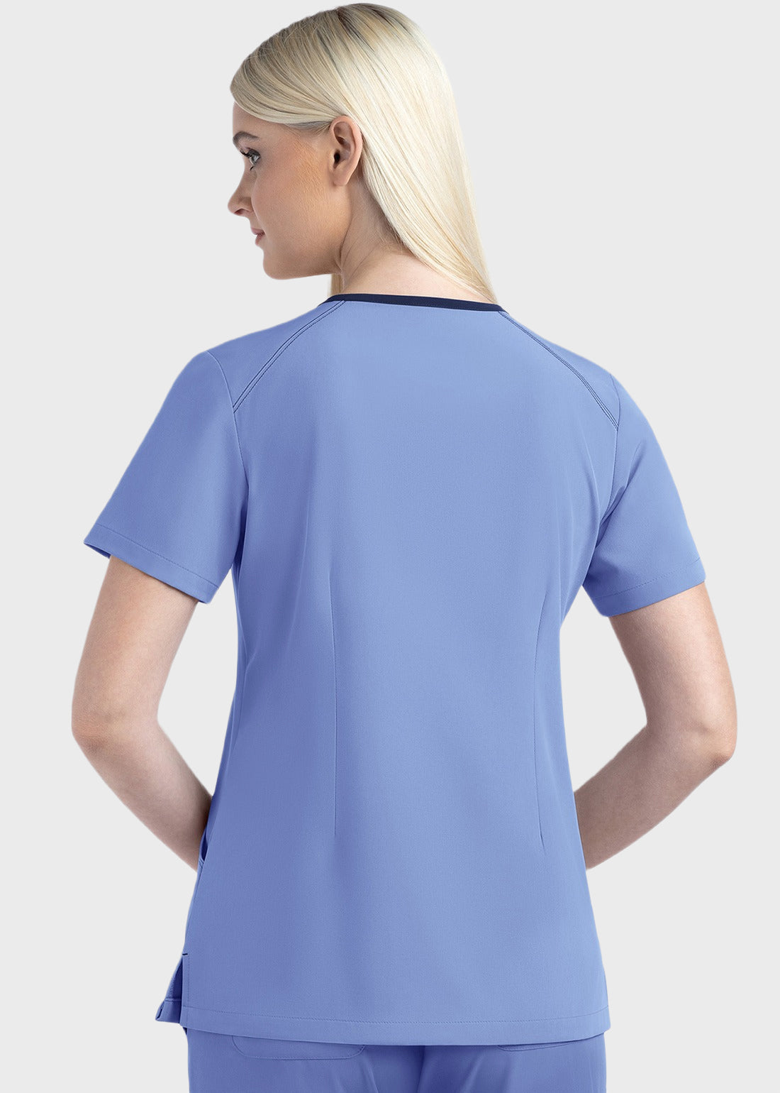 Look good and feel great in Matrix Impulse by Maevn 4510 Women's Shaped Solid Scrub Top. The modern missy fit top comes with a cross-over v-neckline, short sleeves, back shoulder yolks and darts and curved princess seams for an impressive look. Completed with 2 front curved patch pockets, inner cell phone pocket and side vents, the top is great value for money.