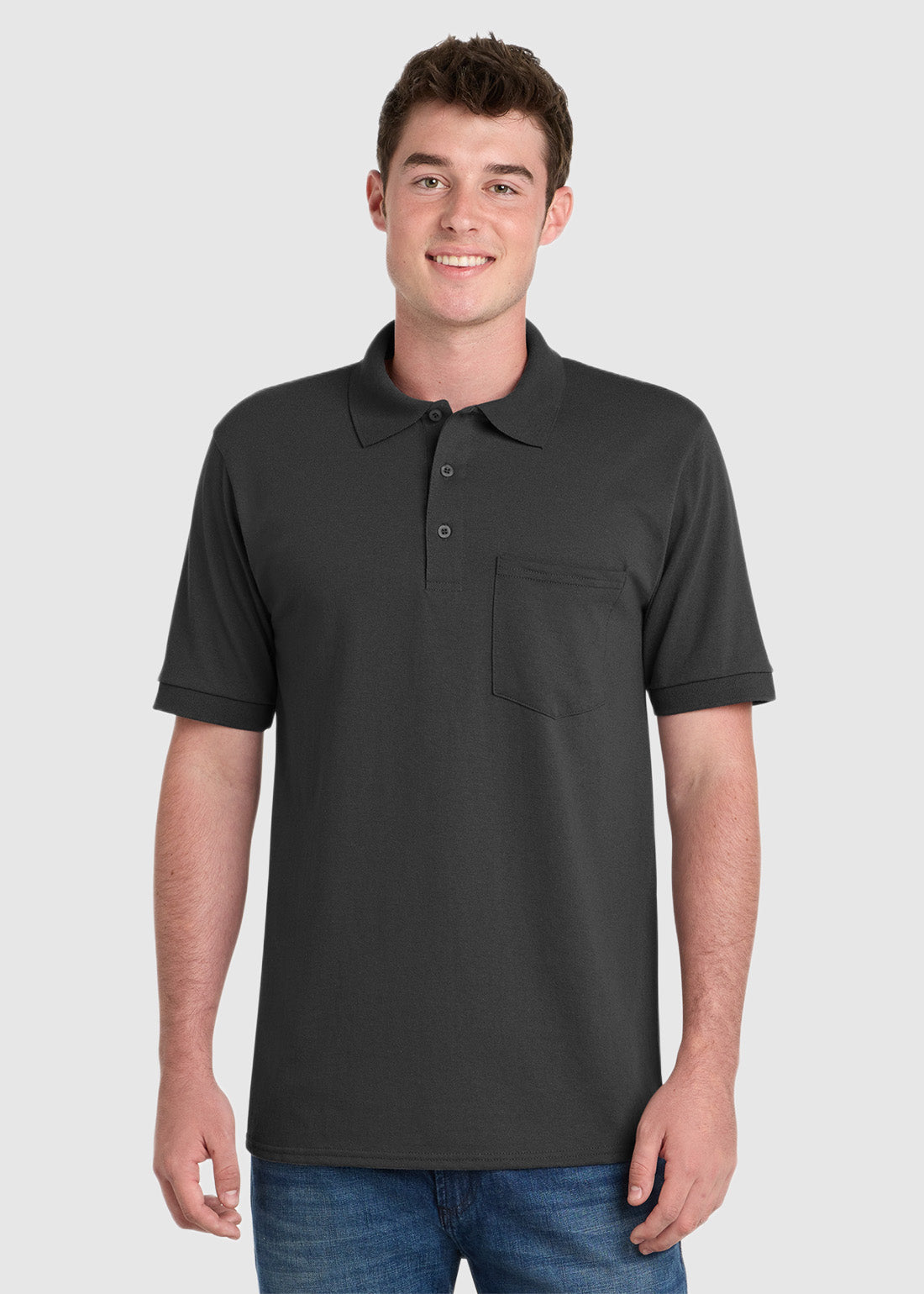 Look smart and feel at ease with Port & Company Core Blend Jersey Knit Pocket Polo. With a stain-release finish, 1x1 rib knit collar and cuffs, 3-button placket with dyed-to-match buttons, double-needle hem for your everyday needs.