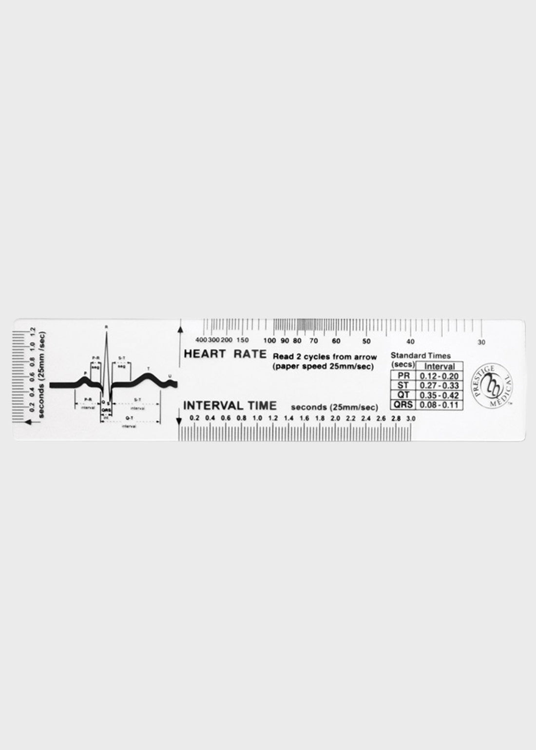 Prestige features this pocket-size ruler for interpreting EKG waveforms. It is made from heavy-gauge clear plastic for greater durability.