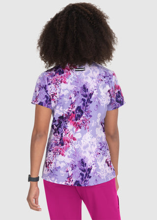 Koi Stretch Elena Women's Watercolor Petals Split-Neck Print Scrub Top