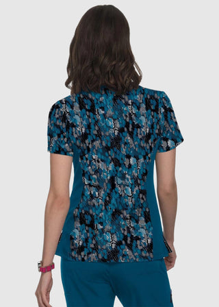 Koi Stretch Luisa Women's Meadow Patchwork Heart-Shaped Neck Print Scrub Top