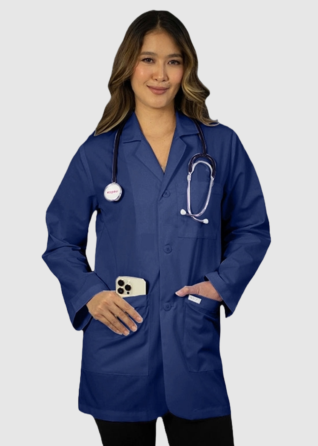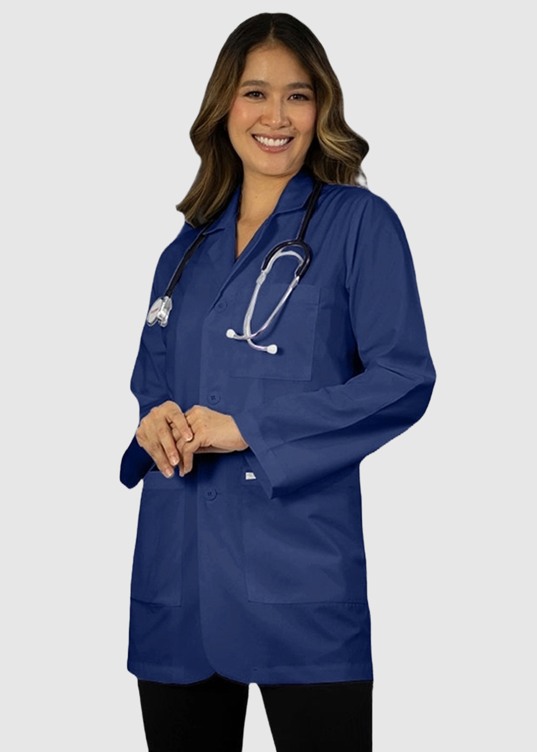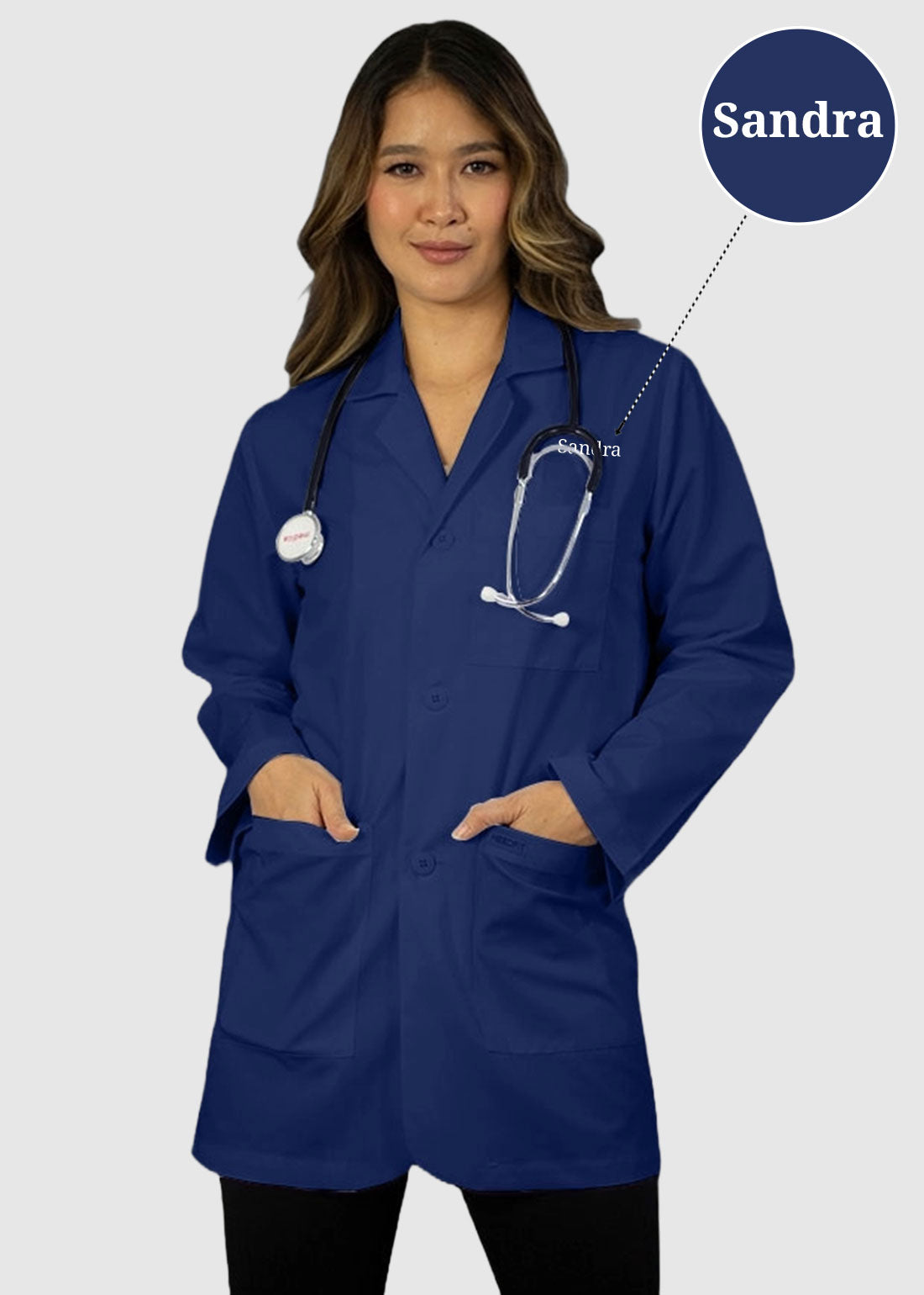Give your personality an edgy look with HeedFit Free Embroidery Unisex 31 Inches Three Pocket White Consultation Coat. Tailored as per your needs, the unisex consultation coat is crafted using the finest of fabric to keep you going through the toughest of shifts. With a modern notched lapel and three-button closure for ease of wear, and two roomy patch pockets and one breast pocket with pen holder for storage makes this lab coat a wearer’s dream.