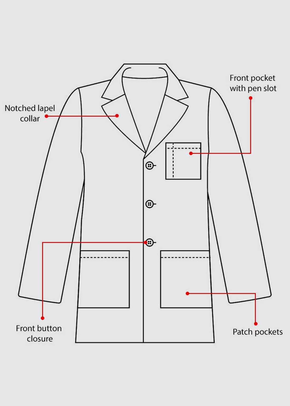 Masculine, sturdy and impressive, the HeedFit Free Embroidery 31 Inches Three Pockets Lab Coat for Unisex is crafted to perfection. The functional lab coat comes is equipped with a classic notched lapel collar that adds to its charm, while three-front button is easy to wear. Completed with long set-in breathable sleeves and spacious patch pockets, the lab coat is tailored for professionals on the go.