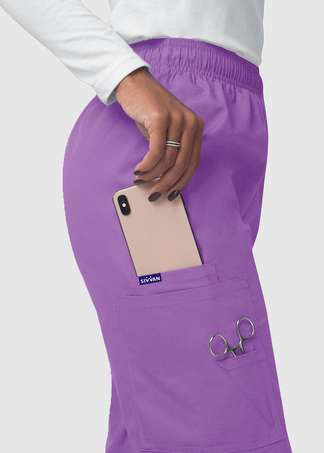 Carry all your essentials safely with Adar Sivvan Womens Comfort Elastic Drawstring Cargo Pants. The wide comfort full elastic waistband with inner drawstring makes it comfortable. The natural rise, tapered leg pants come with four Pockets: two large cargo pockets, cell phone pocket, and extra scissor pocket on right for your everyday needs.