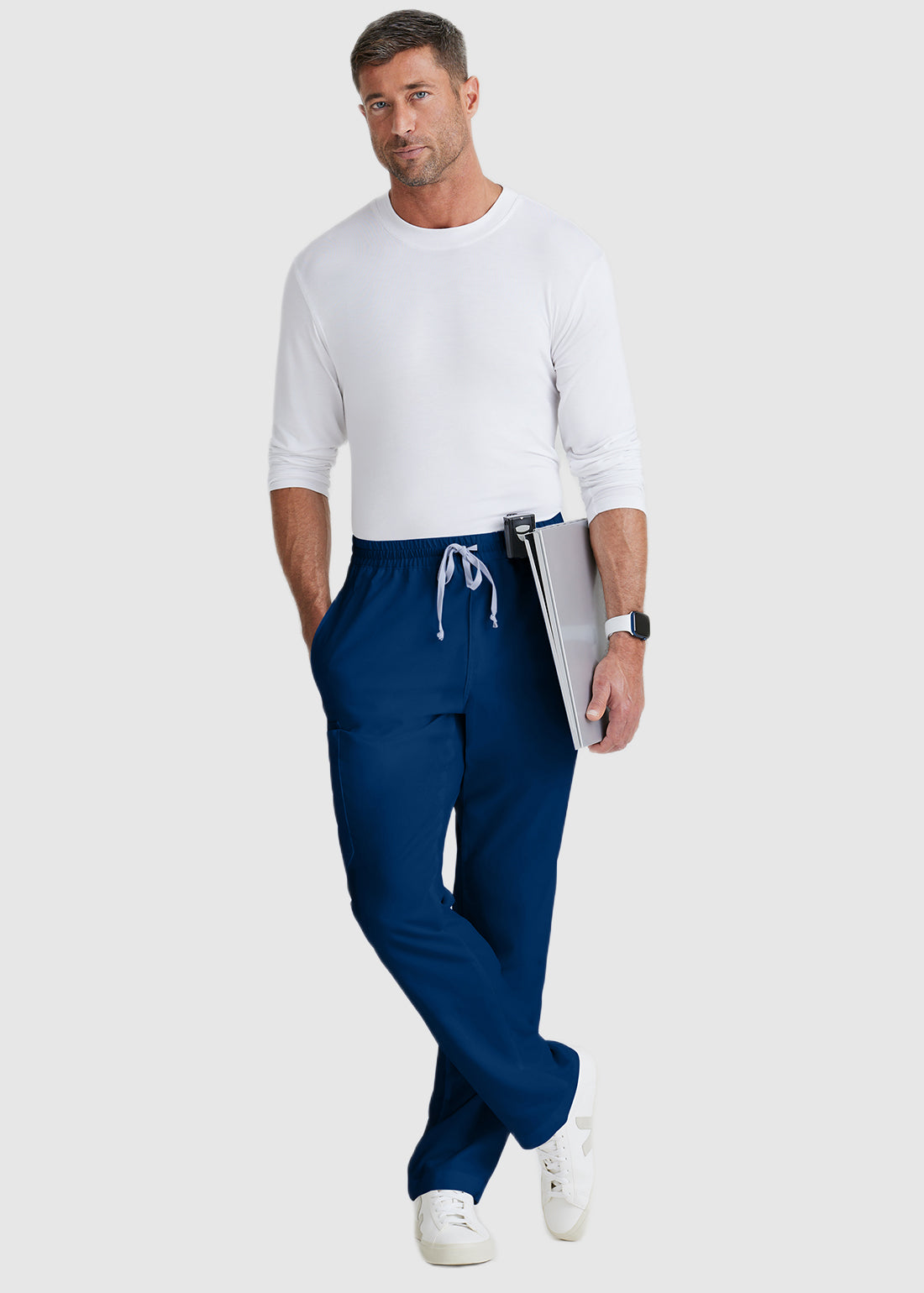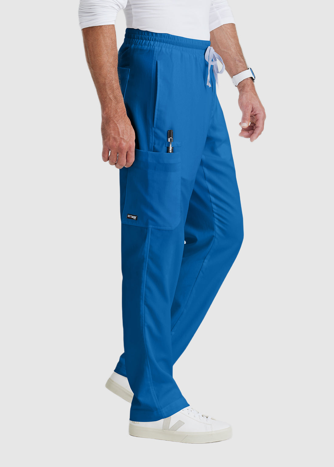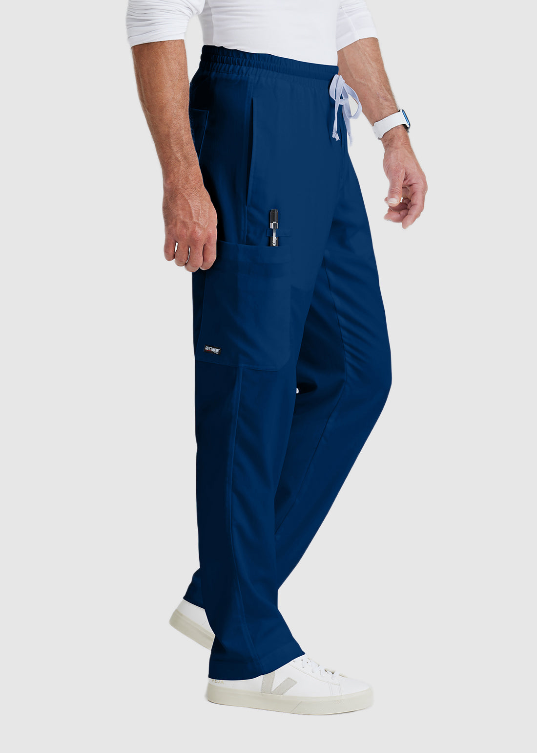 Carry all your essentials safely with Grey Anatomy Classic Men Tall Evan Scrub Pant. With a full elastic waistband and functional front zip fly for comfort, contrast drawcord that looks great, two side entry pockets, single back patch pocket and doubled cargo pocket with utility tape, you get optimal storage on the go.