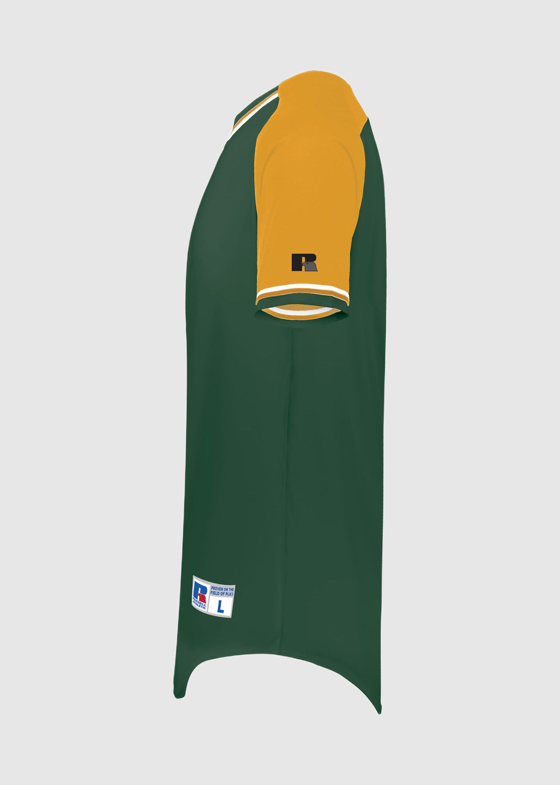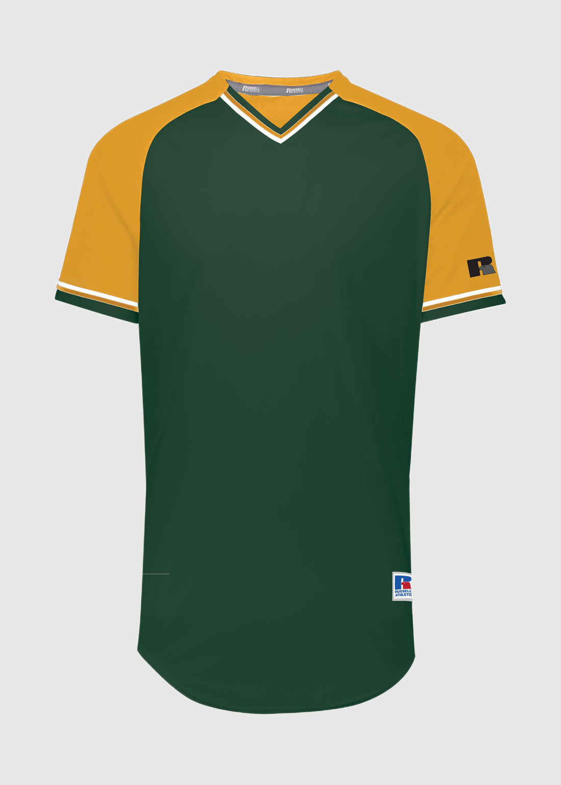 Look good and feel better in Russell Classic V-Neck Jersey. The Dri-Power Moisture-Wicking Technology, outside locker label, V-neck collar with braid trim, contrast color back yoke, inserts and braid, raglan sleeves, and contoured bottom makes this jersey high on functionality.