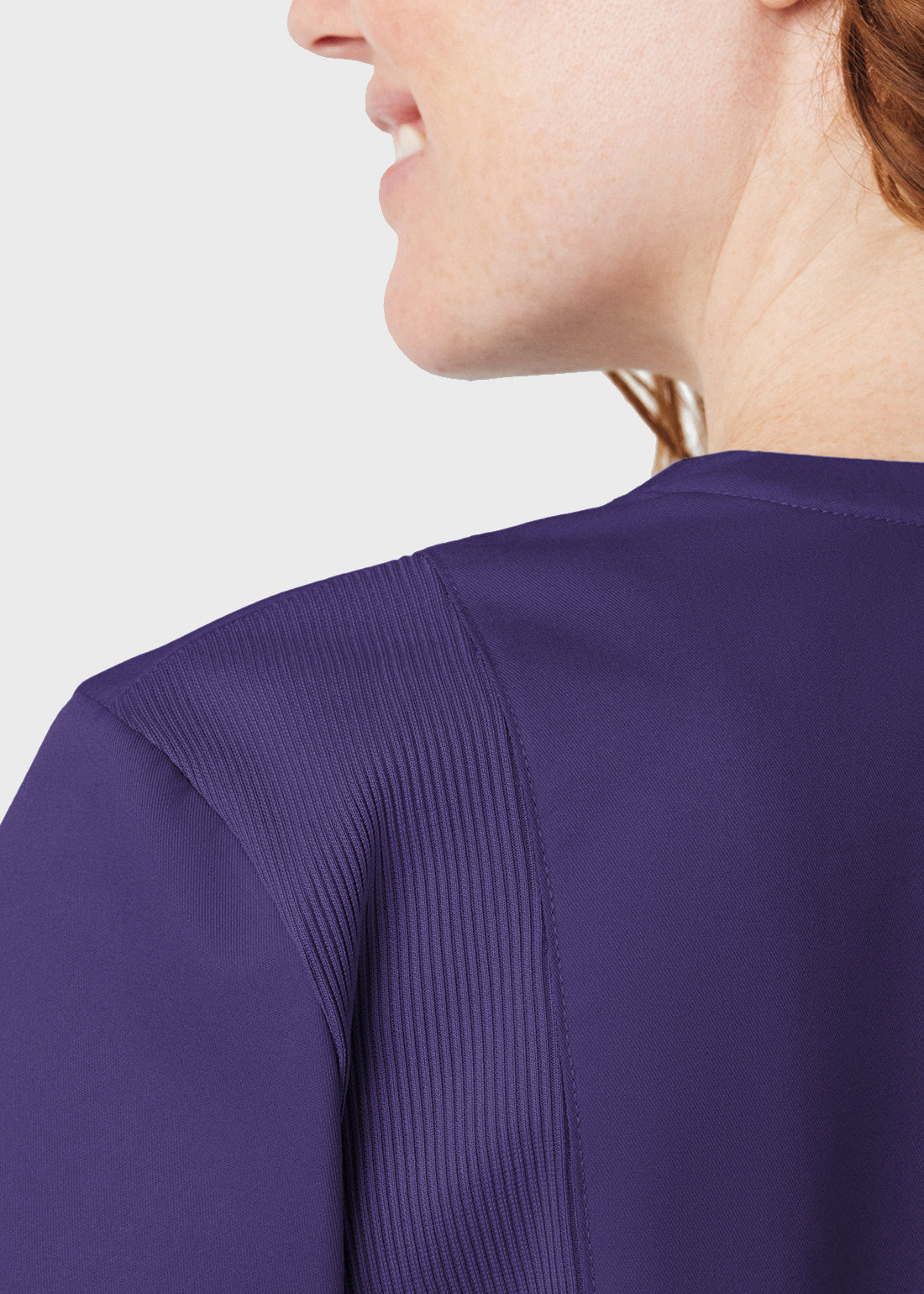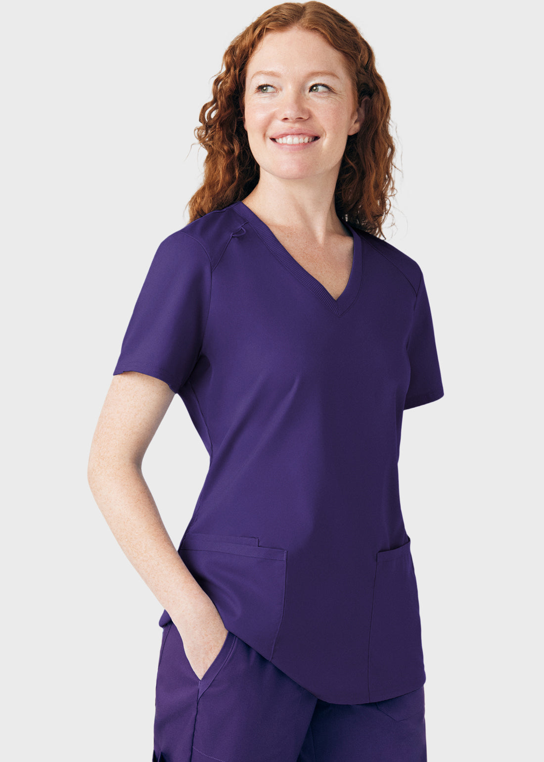 Make comfort your statement with Landau Proflex Women's 3-Pocket V-Neck Scrub Top. With a relaxed V-neck, shoulder bungee loop, short sleeve, and rib-knit neckline and side panels for extra mobility, you get unmatched comfort and performance. Completed with three pockets including two patch pockets, and one accessory pocket, the scrub top is great value for money.