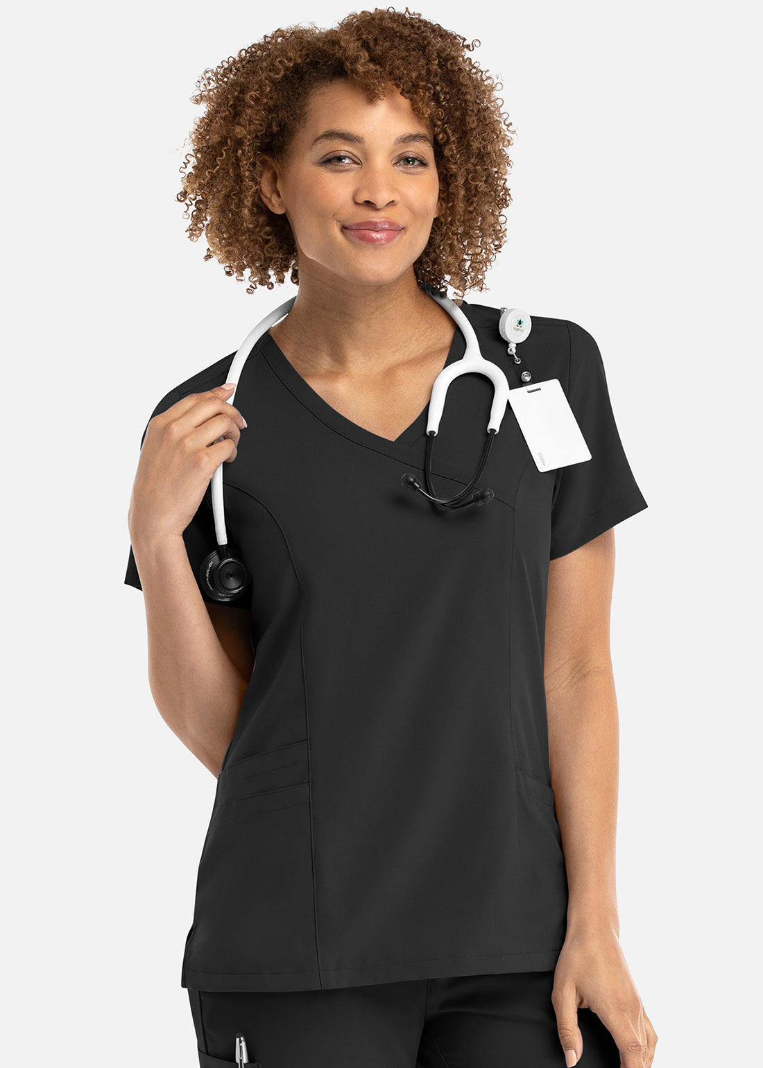 Dress comfortably with Momentum Women Mock-Wrap Neck Top. The women’s Y neck top comes with a decorative logo tape at the inner back neckband. Featuring functional contrast utility loop at shoulder seam, two front slant pockets, front and back princess seams for an effortless silhouette and dyed-to-match micro knit panel at backside panel – look your best on the go.