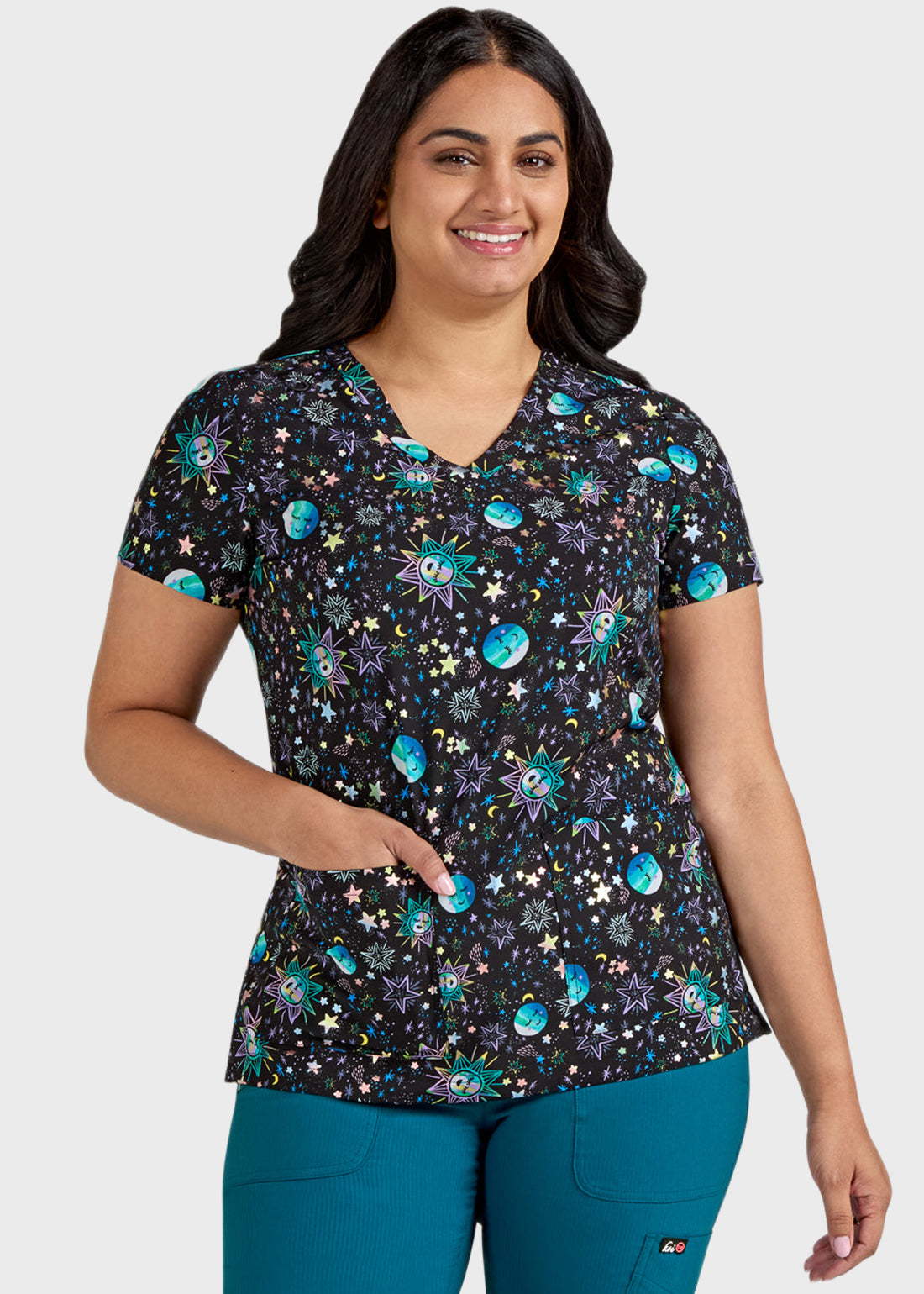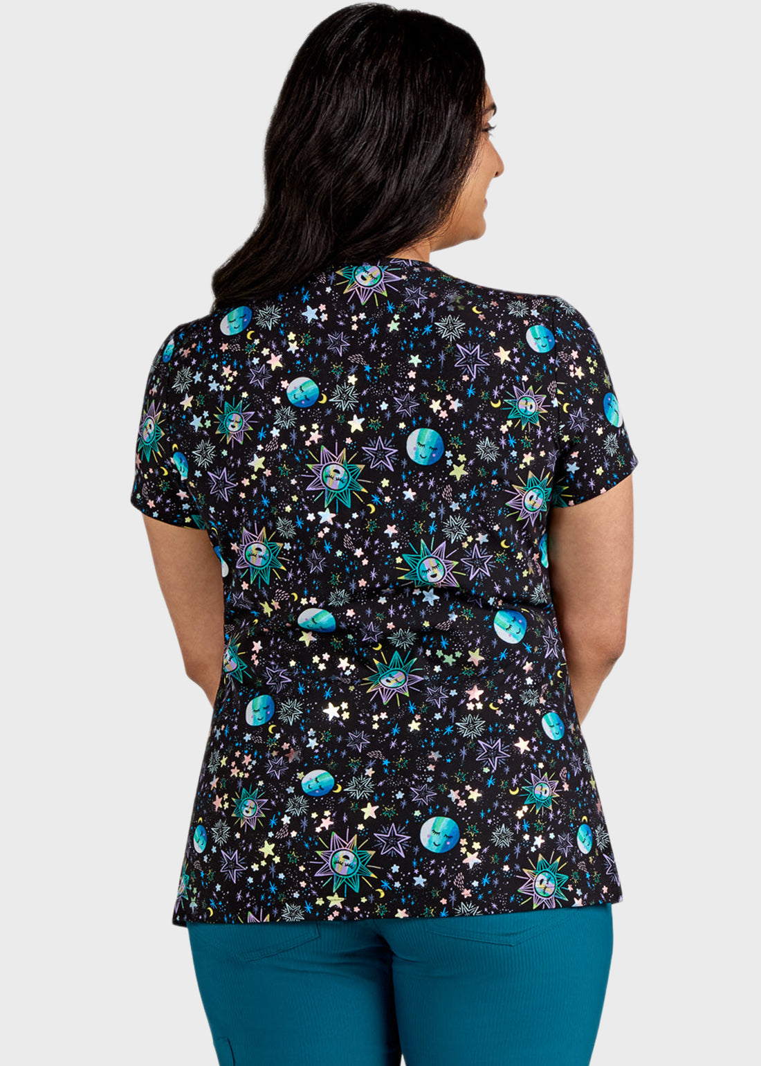 Koi Artists Series Rosalie Women's Moon and Sun Print Scrub Top