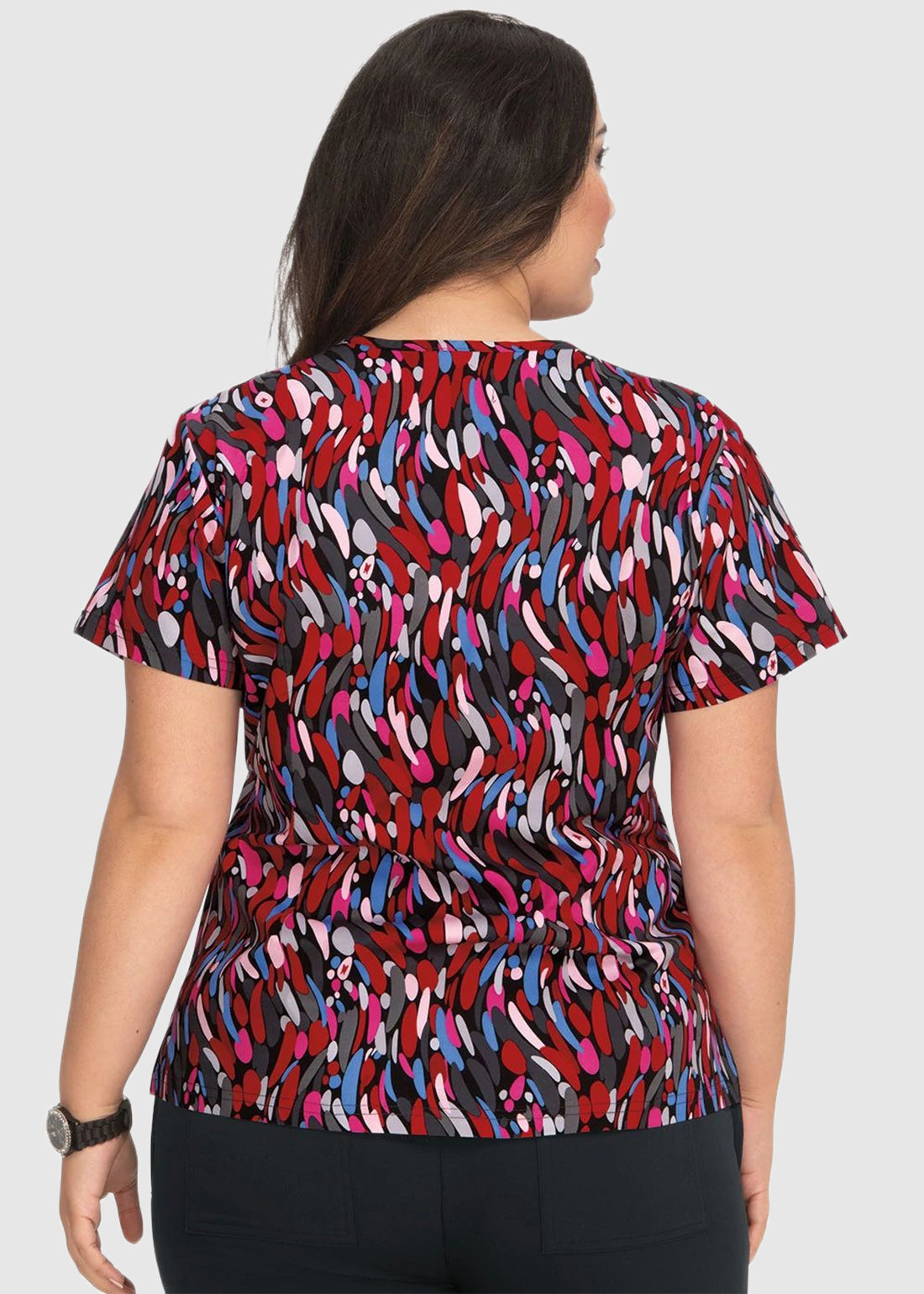 Koi French Bull by koi Doll Women's Twist Stretch Print Scrub Top