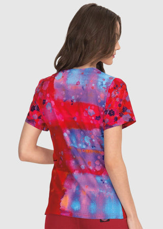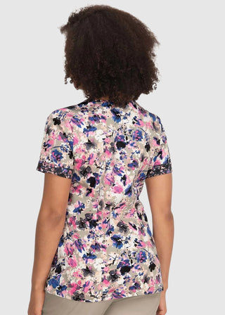 Koi Stretch Elena Women's Watercolor Petals Split-Neck Print Scrub Top