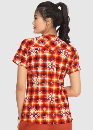 Koi Planet Stella Women's Merry and Bright Stretch Eco-Friendly Print Scrub Top