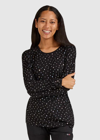 Koi Lite Tessa Women's Iridescent Diamond Pattern Long-Sleeve Crew-Neck Tee