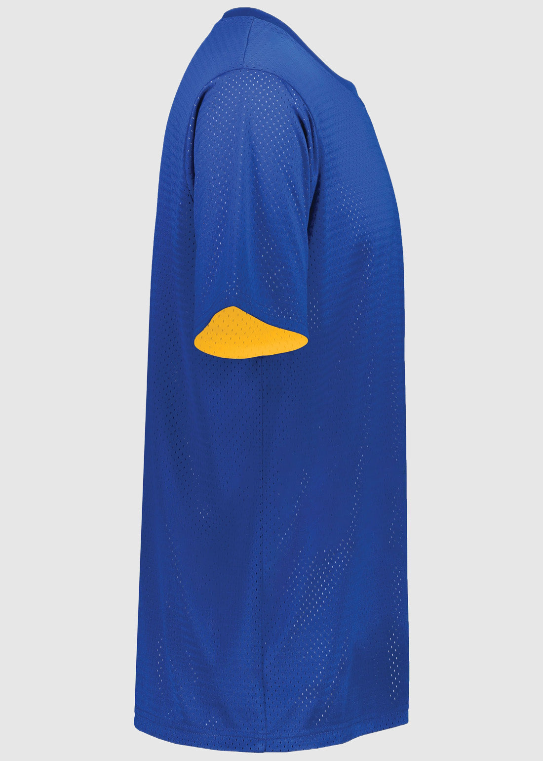 Augusta Sportswear Short Sleeve Mesh Reversible Jersey (AU-1602), a versatile choice for athletes seeking comfort and functionality. With its crew neck design and fully reversible feature, this jersey offers flexibility in styling and usage. The set-in sleeves provide a comfortable fit, allowing for unrestricted movement during activities. Crafted from 100% polyester, it ensures durability and breathability, making it ideal for various sports and training sessions.