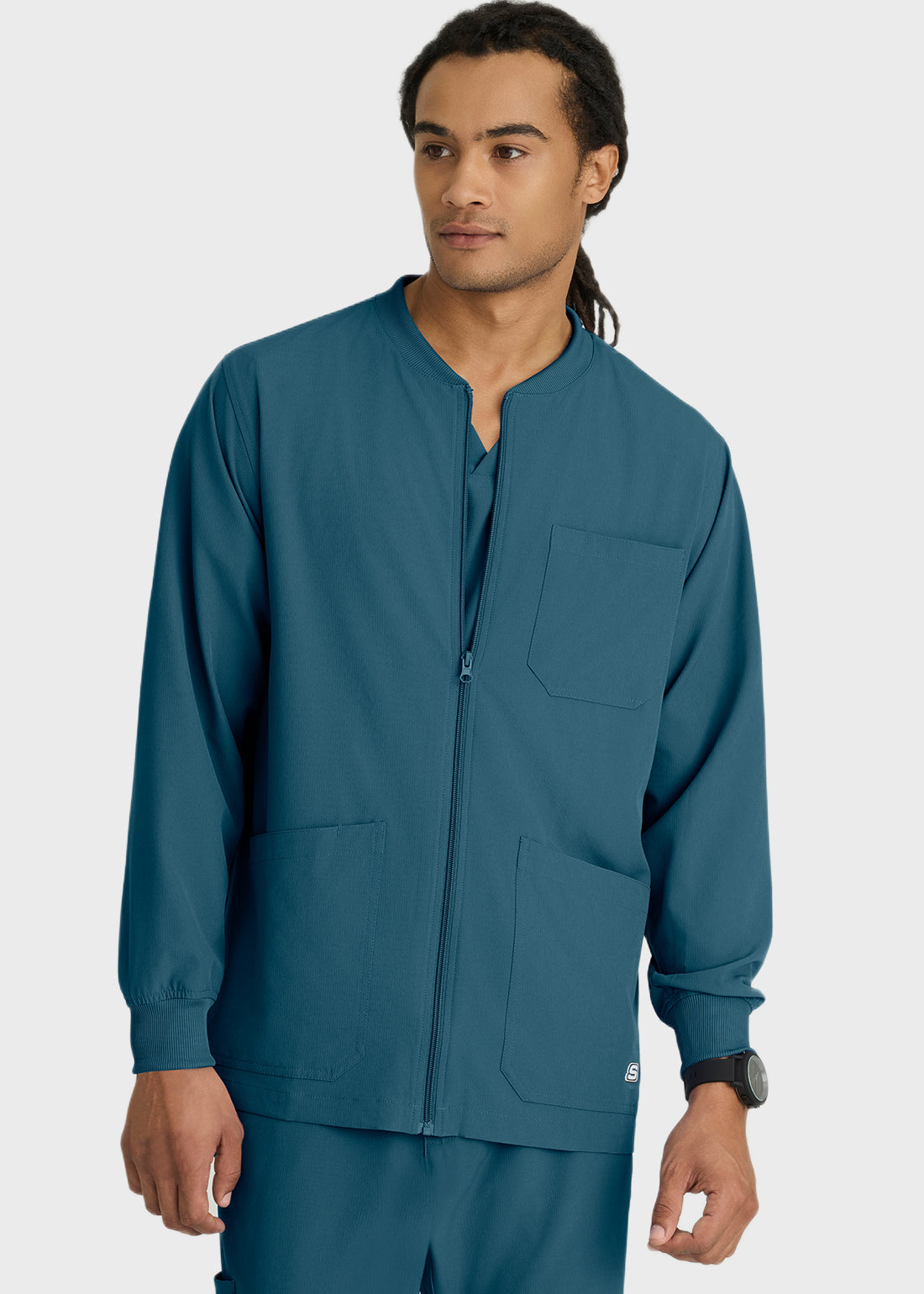 Dress smartly to work in this Skechers zip up scrub jacket. The men’s plus size scrub jacket fits well. Known for its quality, you get great value for money.