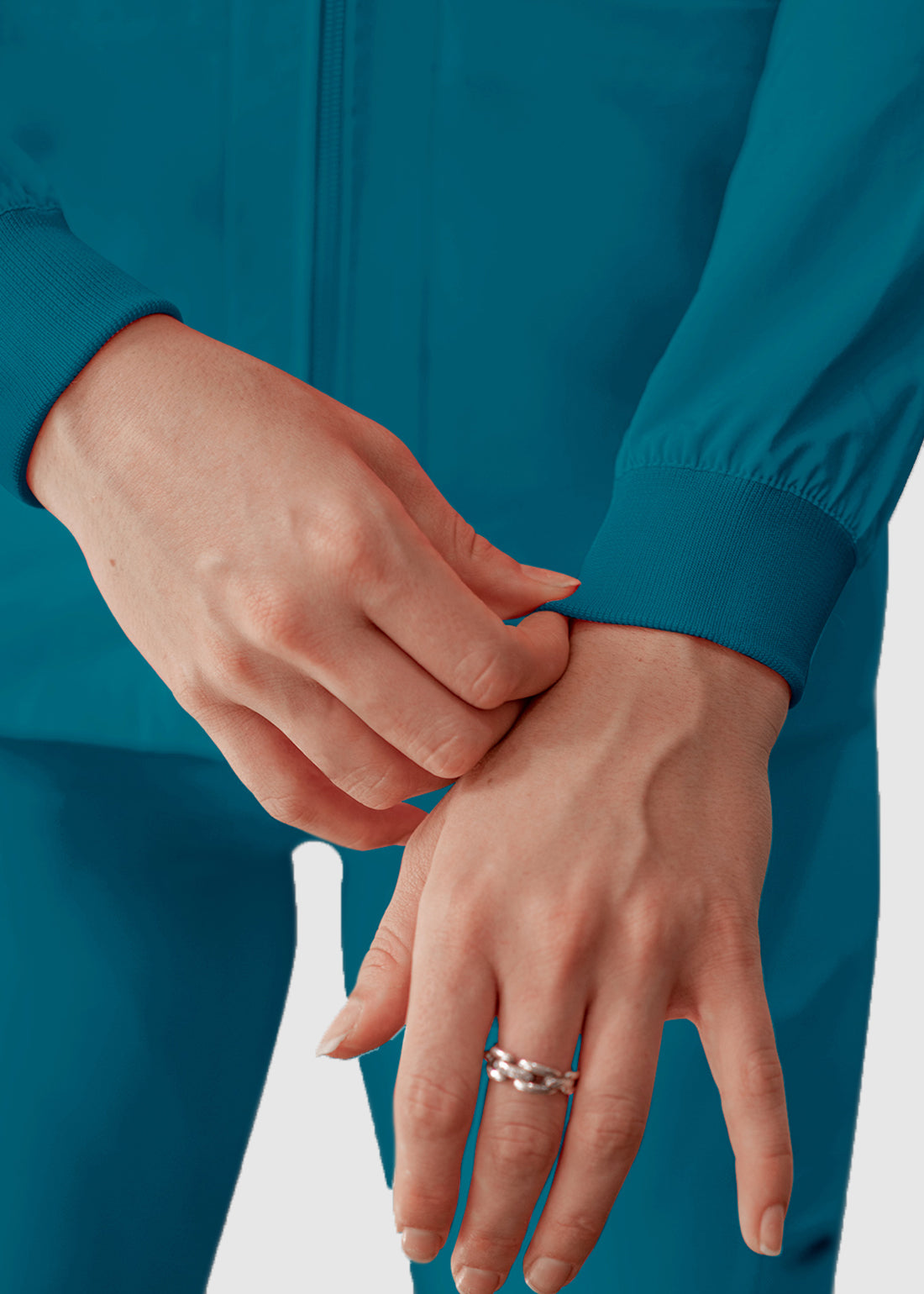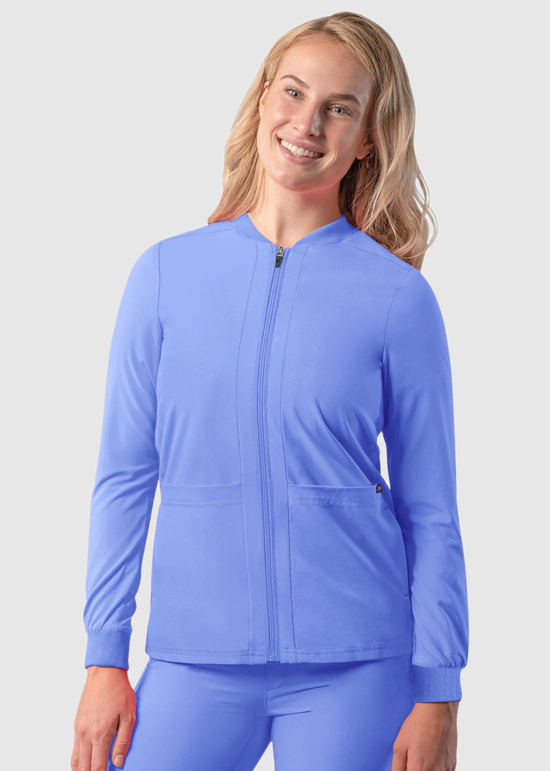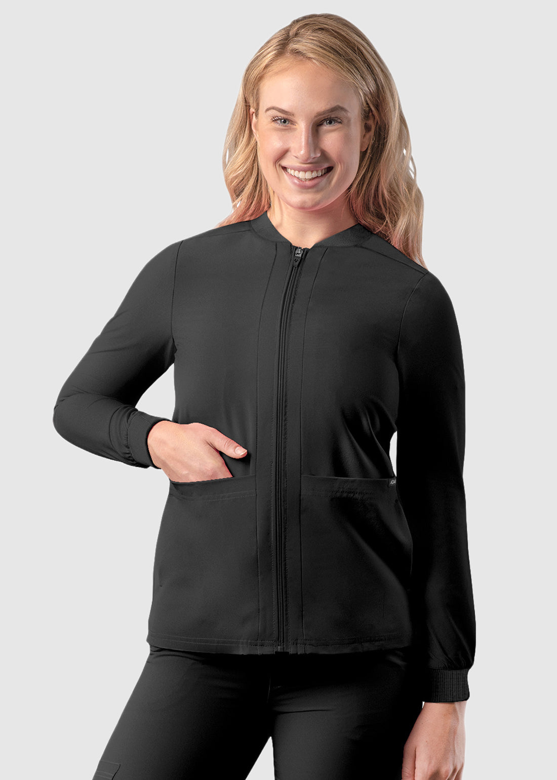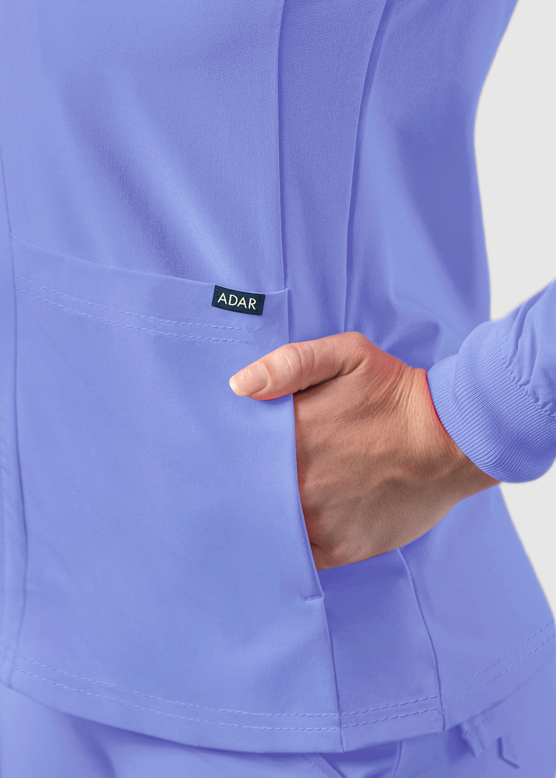 Layer up in style with Adar A6200 athletic inspired zip front scrub jacket. The modern jacket garners maximum movement and is uber flexible. With a stand-out double layer rib knit at neck and cuffs, forward shoulder and back yoke seaming, you get a modern look. Completed with functional pockets, the jacket is great value for money.