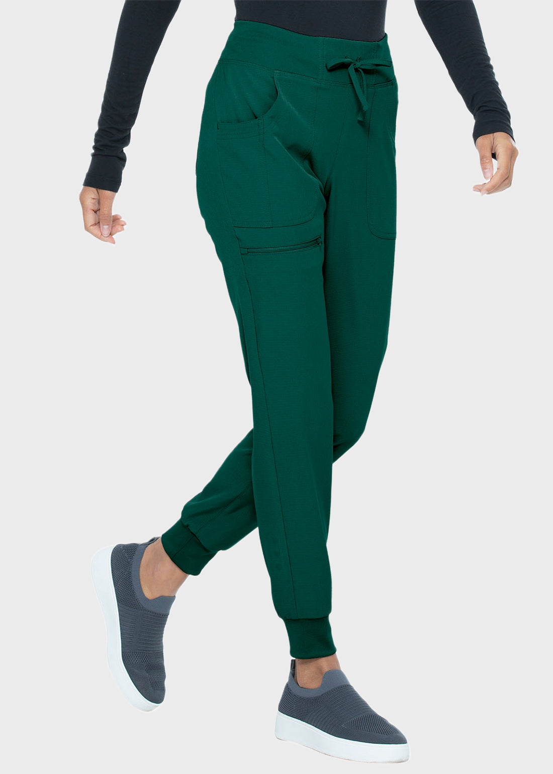 The HeartSoul jogging scrub pants are a good alternative for a fashionable appearance, but not everyone will appreciate the low rise; a mid-rise version would be ideal.