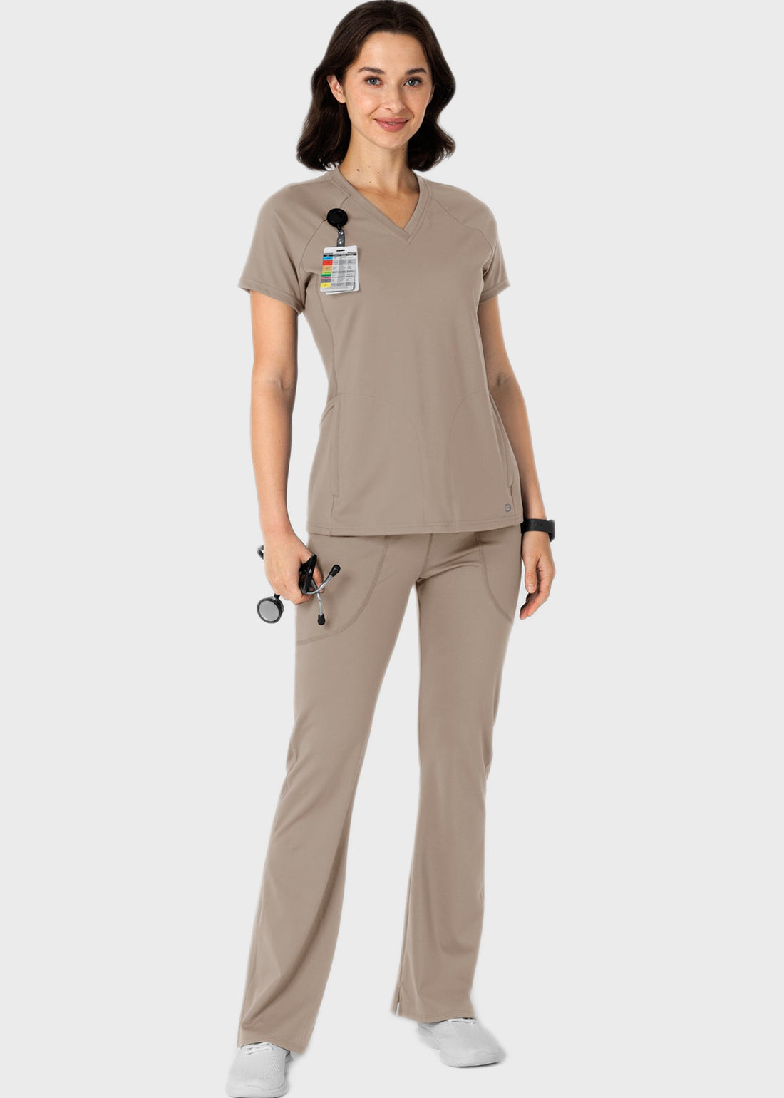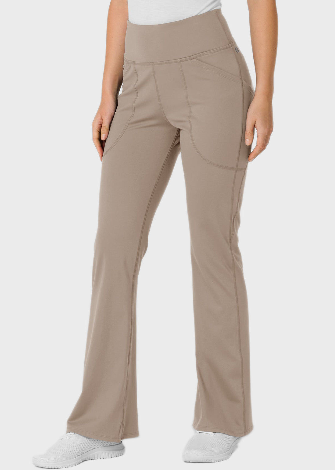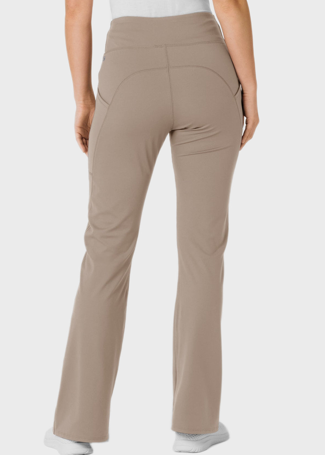 Unlock ultimate comfort and flexibility with the RENEW Knit Women's Flare Yoga Scrub Pant. Designed with a modern fit, it features two front phone pockets, side scissor pockets, a hidden card pocket, and a wide elastic waist. The curved back seams, inseam slits, and stretch fabric ensure style meets performance.