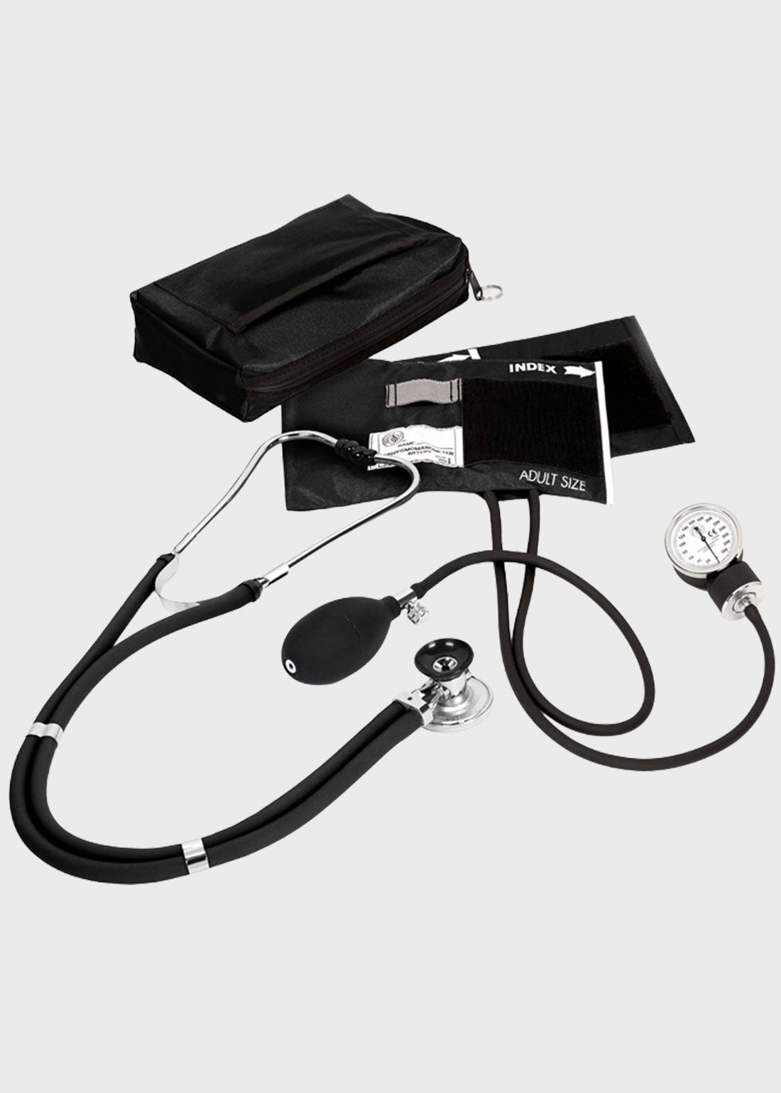 A traditional yet economical Aneroid Sphygmomanometer / Sprague-Rappaport combination kit by Prestige comes with its unique five-in-one design, the Sprague-Rappaport stethoscope is the most versatile stethoscope available. It features latex free, nylon cuff, index and range markings, artery indicator mark, owner ID label, gauge holder, standard inflation bulb and air release valve, A matching 6"x9" nylon carry case, full accessory pouch for Sprague-Rappaport is also provided along the kit. Cuff range: 10-16 inches.