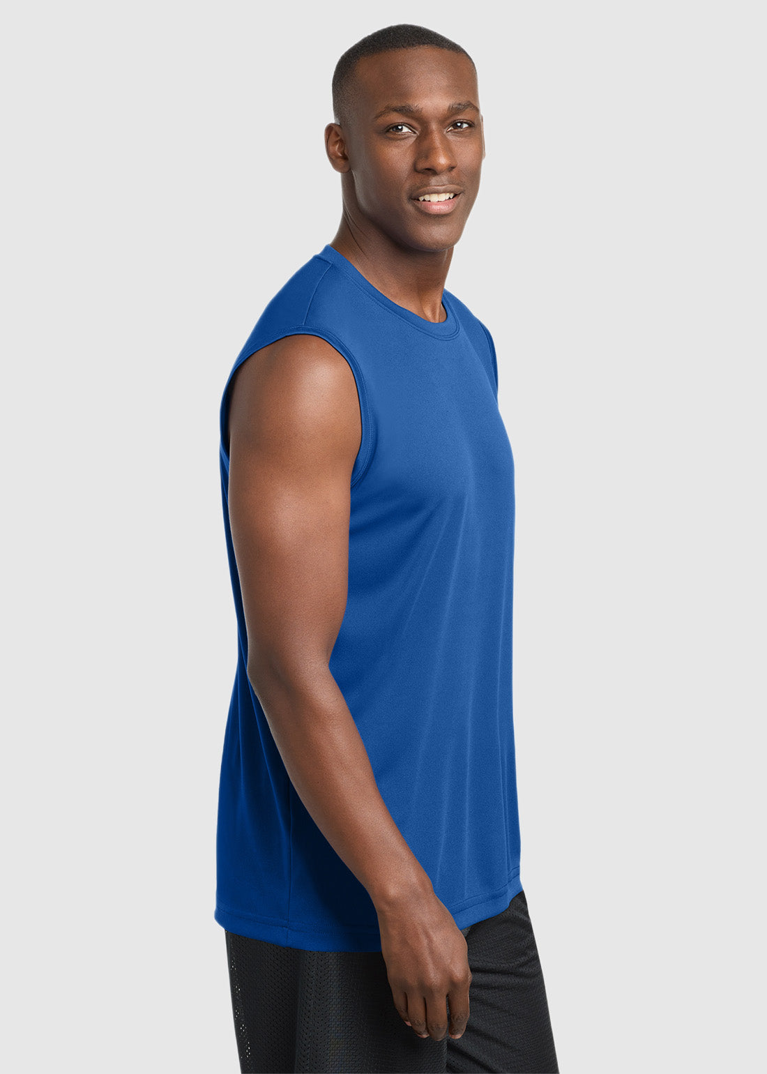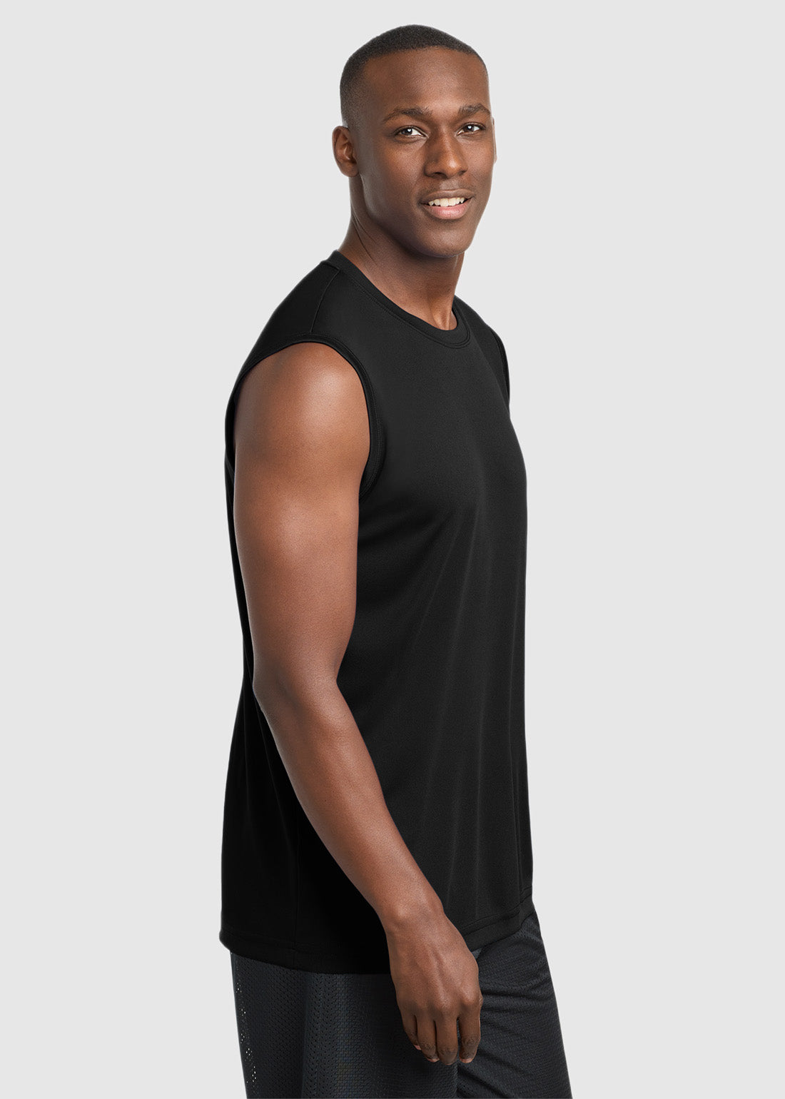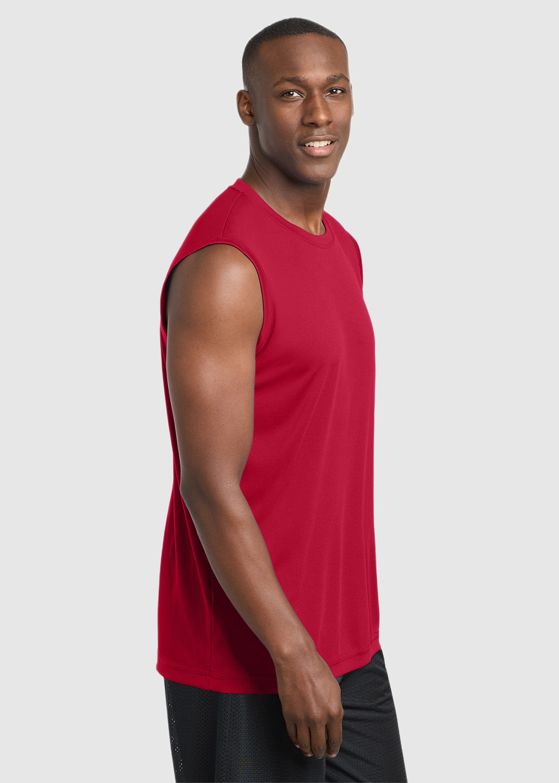 Masculine yet durable Sport-Tek Sleeveless PosiCharge Competitor Tee. With a removable tag for comfort and relabeling and sweat-wicking, breathable Competitor tees with greater freedom of movement, you get performance with comfort.