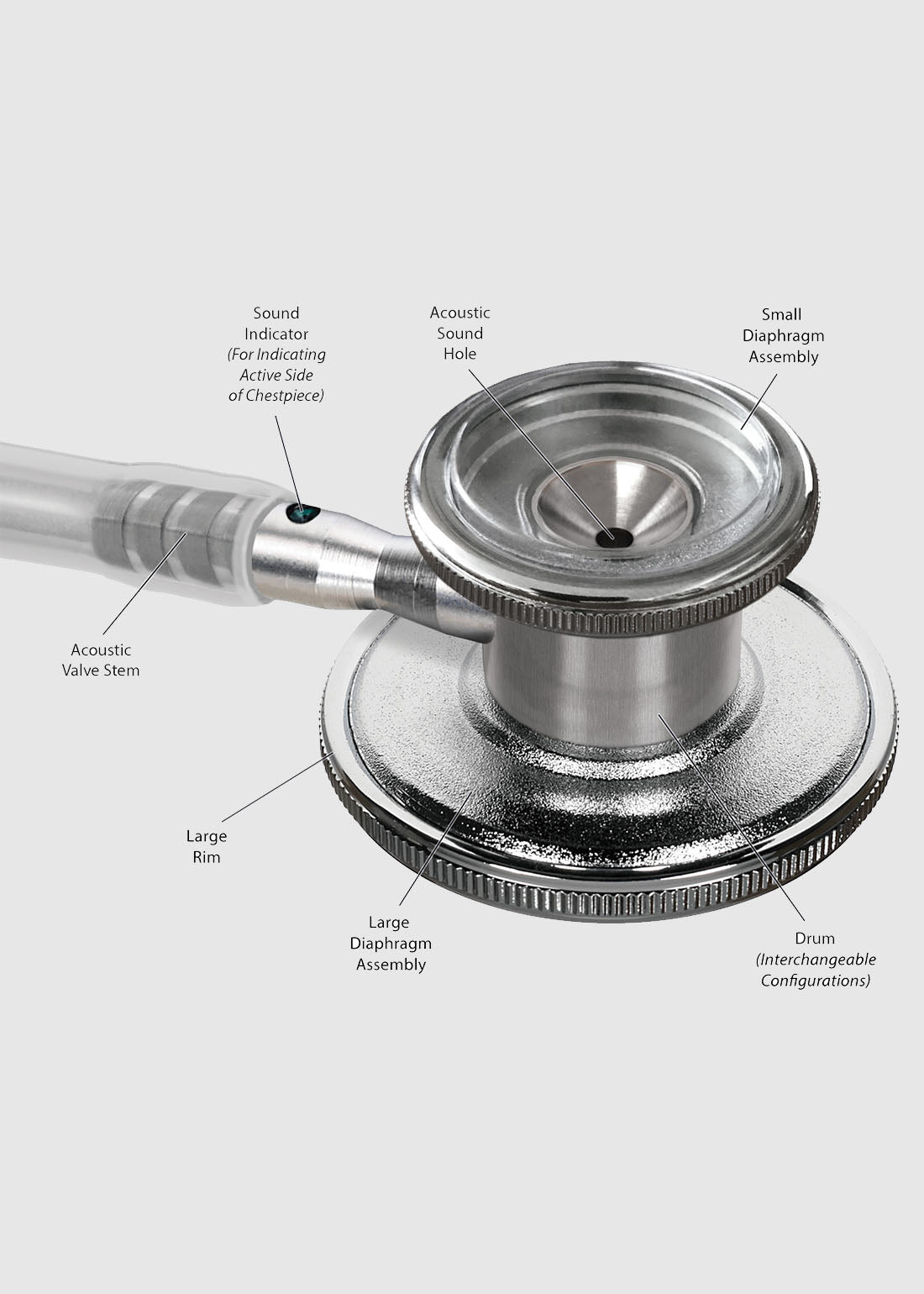 Emulating the design of the classic HP Rappaport Sprague stethoscope, the Clinical Sprague™ has improved upon the original. Specially designed air filled eartips provide extraordinary comfort and sealing ability, interchangeable bells with form fitted non-chill sleeves enhance patient comfort, and redesigned disc assemblies improve functionality and maitenance. Includes firm PVC eartips, ID tag, adult and pediatric diaphragms, infant and pediatric bells, as well as pediatric diaphragm assembly and disc key. Lifetime warranty with free lifetime replacement parts is also provided. It weighs approx 7.3 oz. Total length: 24 inches.