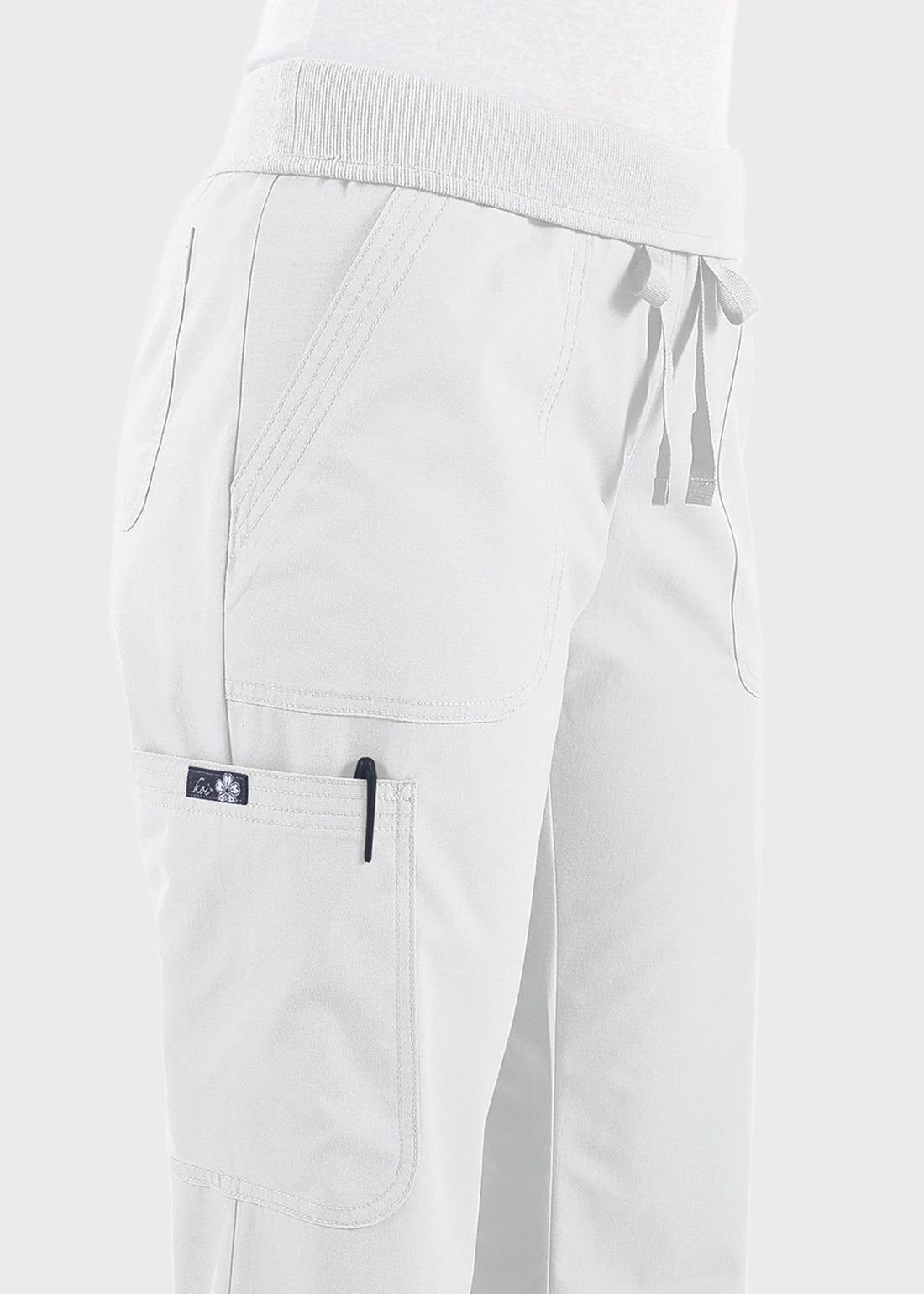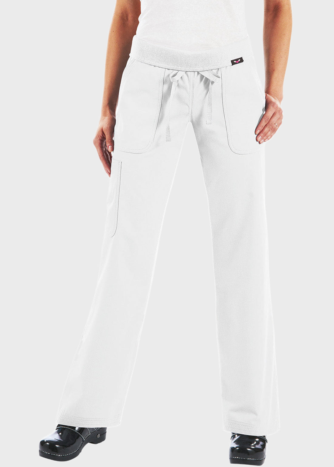 Move with ease and render a stylized look with the Koi Morgan pant by Koi Uniforms. Functional features include a lot of pockets for storage; two front pockets, two side pockets and one back pocket for a better and organized storage of your medical items and accessories. The rib trimmed waistband can be worn up for a natural fit or worn down. Moreover, the yoga style pant comes with multi-stitched hems that add to your professional appeal and offer a stylized look. Lastly, the cotton-poly fabric makes this pant highly durable and comfortable to wear.