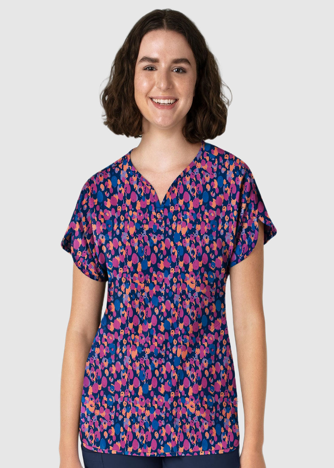 Wink Scubs Women's Dolman Print Scrub Top in Painted Dots Navy