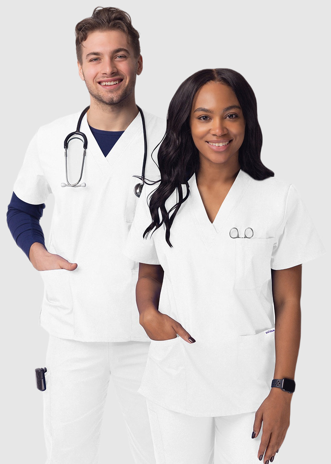 Dress smartly to work in Adar Sivvan Unisex V-Neck 3 Pocket Top. The V-neck tunic styling looks exceptional, while the two roomy lower patch pockets, chest pocket with pen divider and side vents for easy movement make the top a must have.