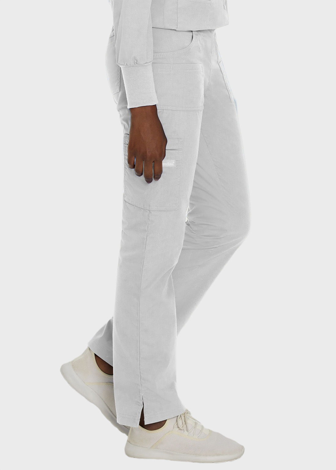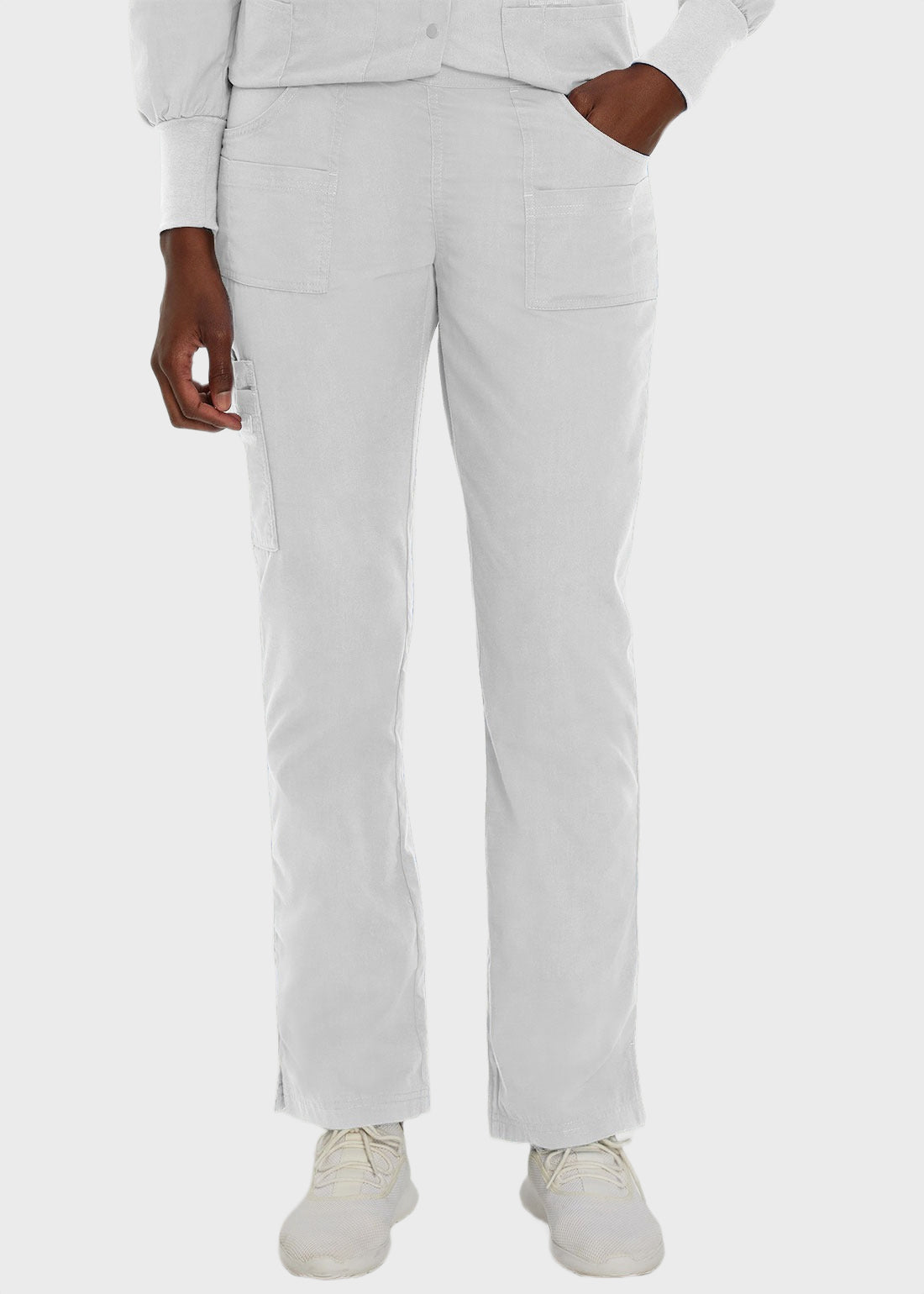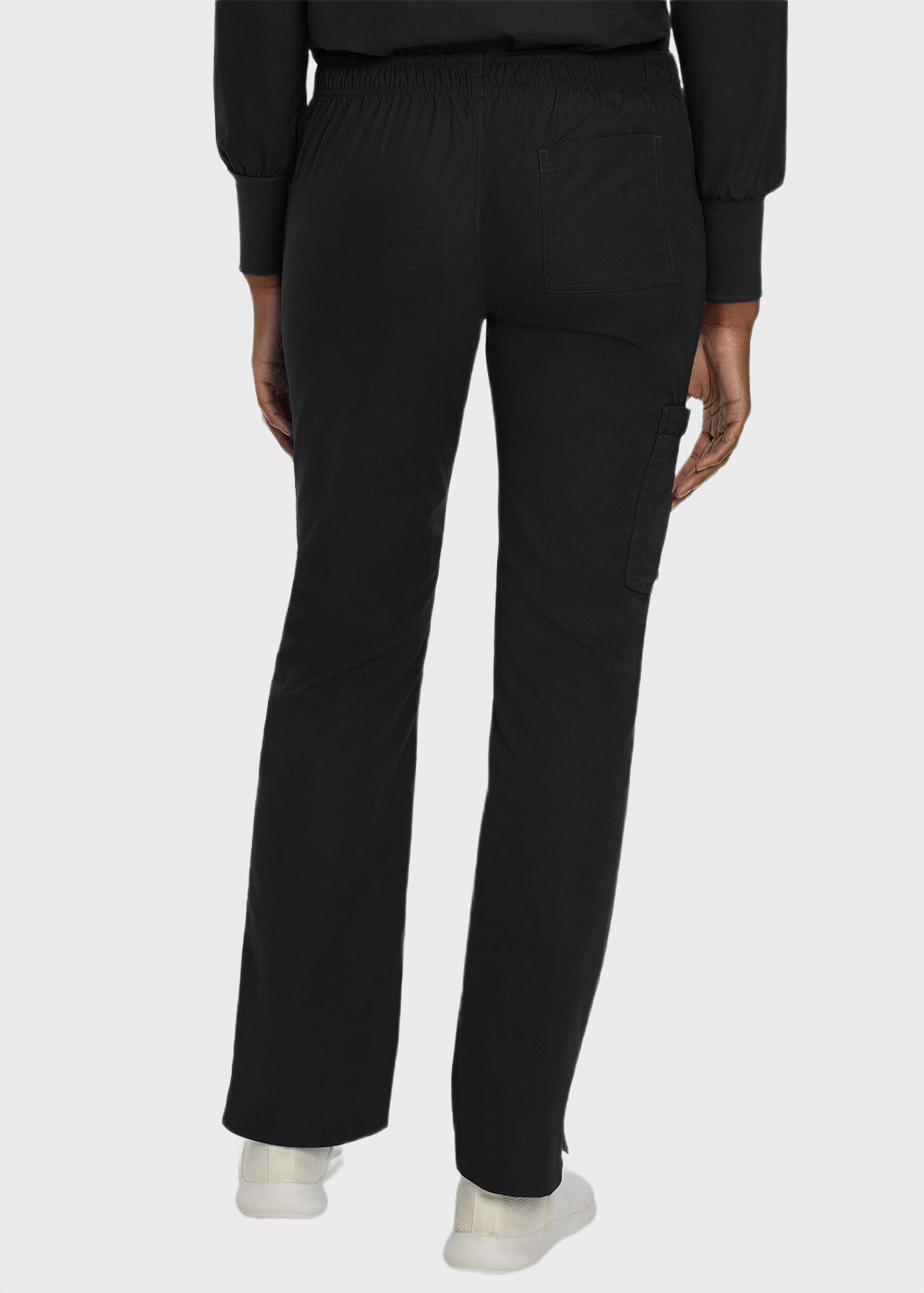 - Mid-rise 50/50 drawstring front, elastic back scrub pant