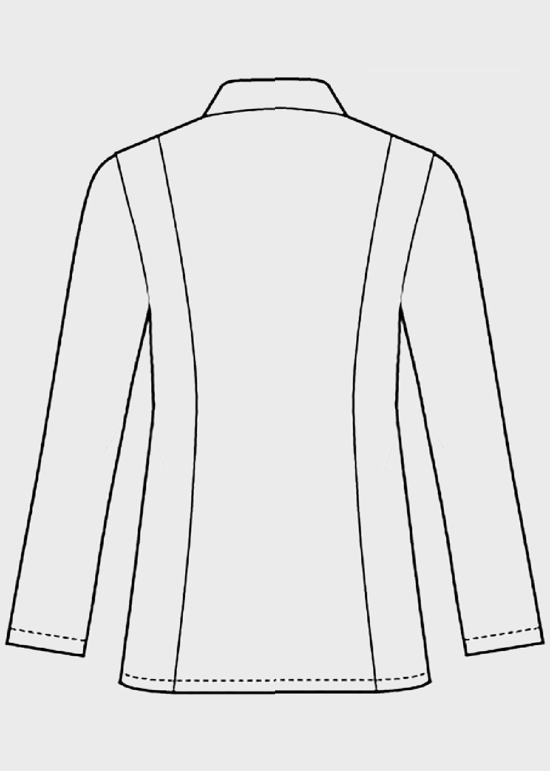 Perform your best in Cherokee modern classic fit consultation length lab coat. With notched lapels, a three button front closure and back princess seams you get an impeccable fit. With three pockets: one chest pocket and two front tablet pockets and a center front overlap with a rounded front hem, the lab coat is a must have.
