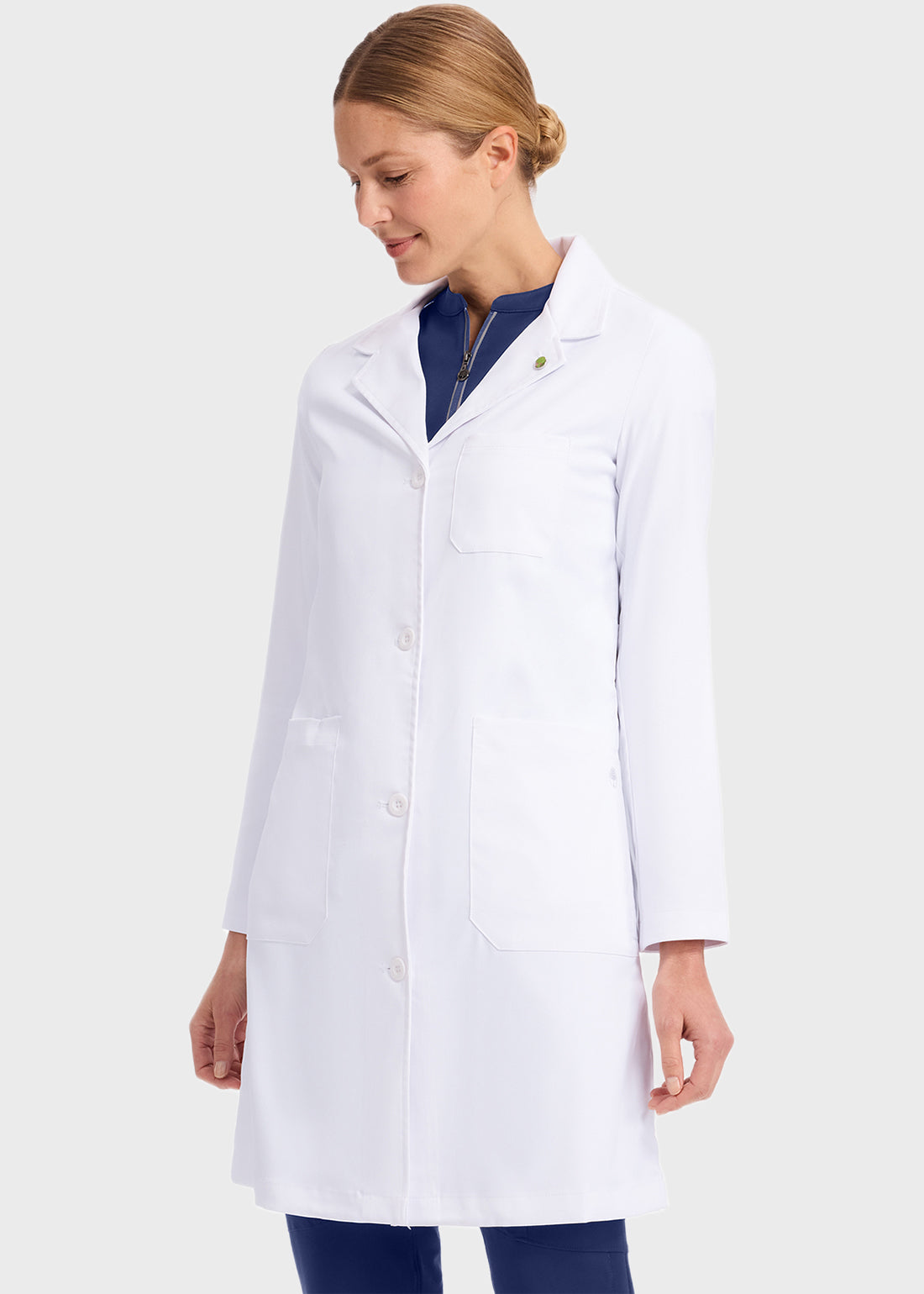 Get optimal coverage and performance with Healing Hands Faye Labcoat. The full length offers a relaxed fit. With a notched lapel collar, two inside pockets, three outside pockets, stitched back belt detail and two-way stretch ensures functionality and comfort on the go.