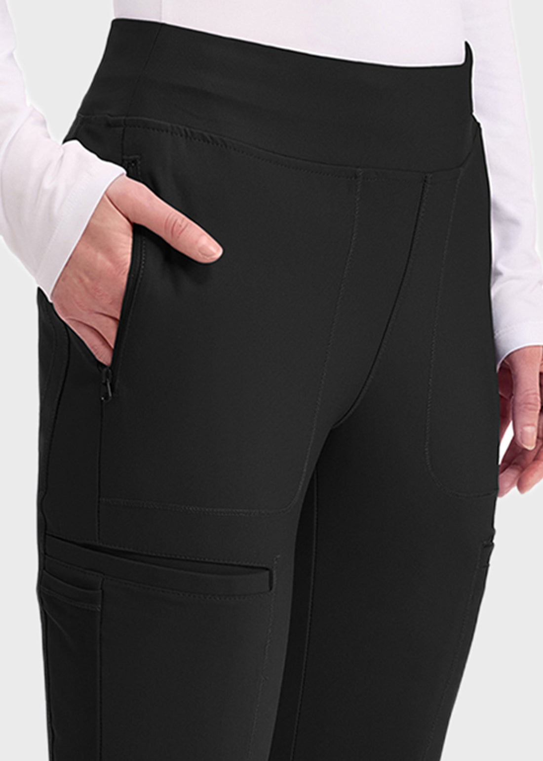 Stay at ease all day long with Cherokee Form Mid Rise Tapered Leg Petite Drawstring Pant. The midrise pull-on pant comes with an interior elastic and drawstring waistband. The slimming side panels from the waistband to the cuffs render an effortless silhouette, and self-knit cuffs stay in place. Completed with six pockets: two front zip pockets, one back welt pocket, two welt cargo pockets, and one power mesh utility pocket on the wearer's left cargo pocket for storage, the pants are great value for money.