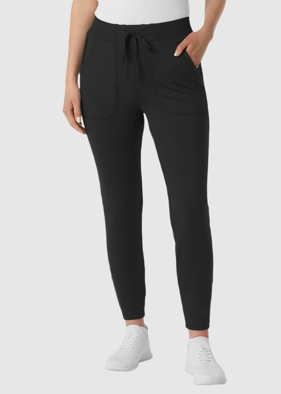 Step into comfort and style with the RENEW Knit Women's Track Scrub Pant, designed for the modern professional. Featuring an athletic fit, it offers two front and two back pockets, a drawcord-adjustable waist, and an adjustable back leg for extra room around wide calves. Perfect for all-day wear!