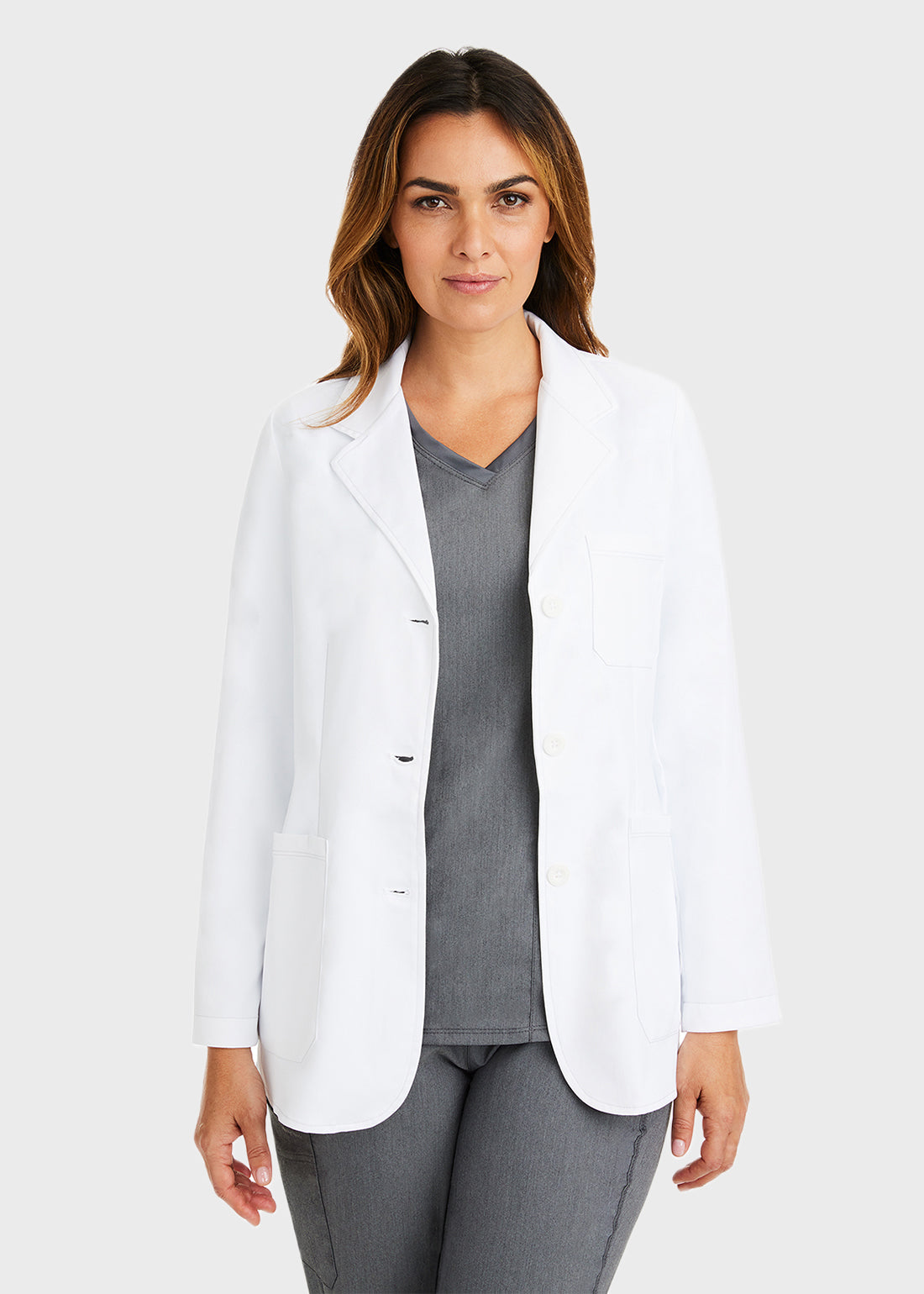 Be smart and look great in 5160 Flo Lab Coat. The Classic notched lapel lab coat comes with Princess dart for a superior fit. Completed with three outside pockets and two inside pockets, storage of essentials is easier than ever.