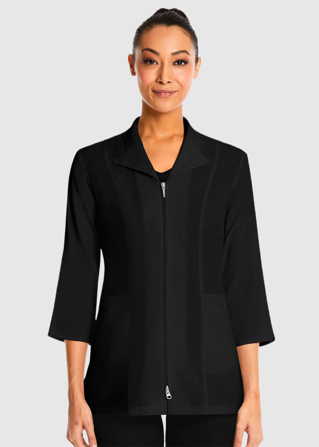 Make an impression with Maevn 8801 Three Quarter Sleeve Zip Smart Lab Jacket. The modern Lab jacket comes with a fashion collar, two way front zipper and front princess line for performance. Completed with two way front zipper and two front pockets with inner pockets, the jacket is a must have.