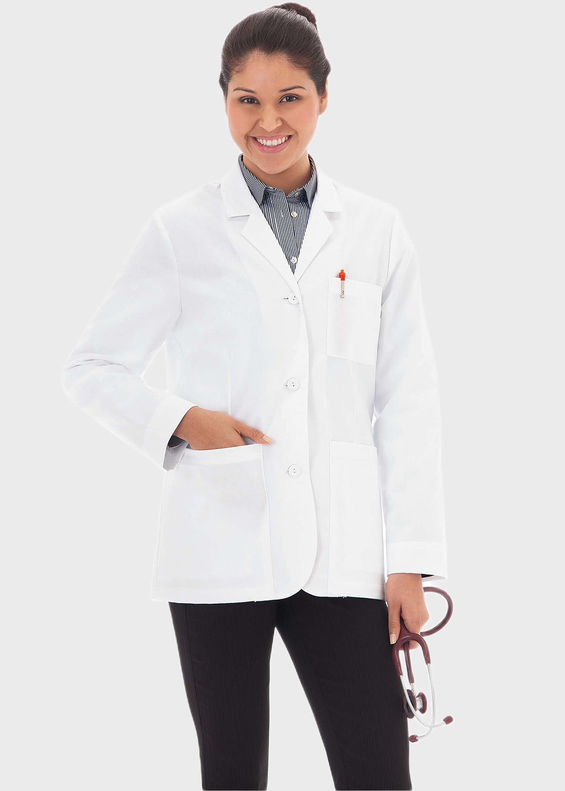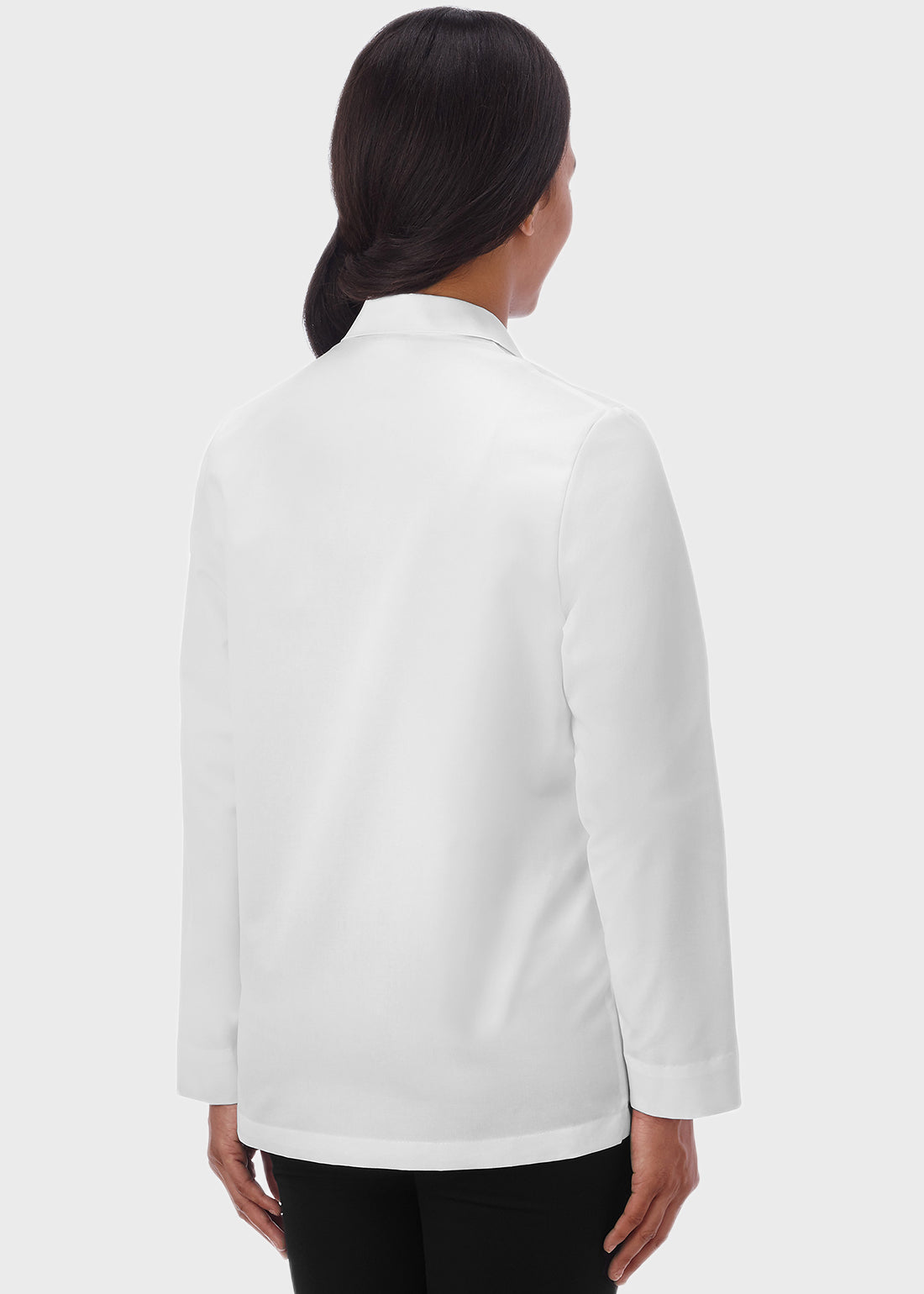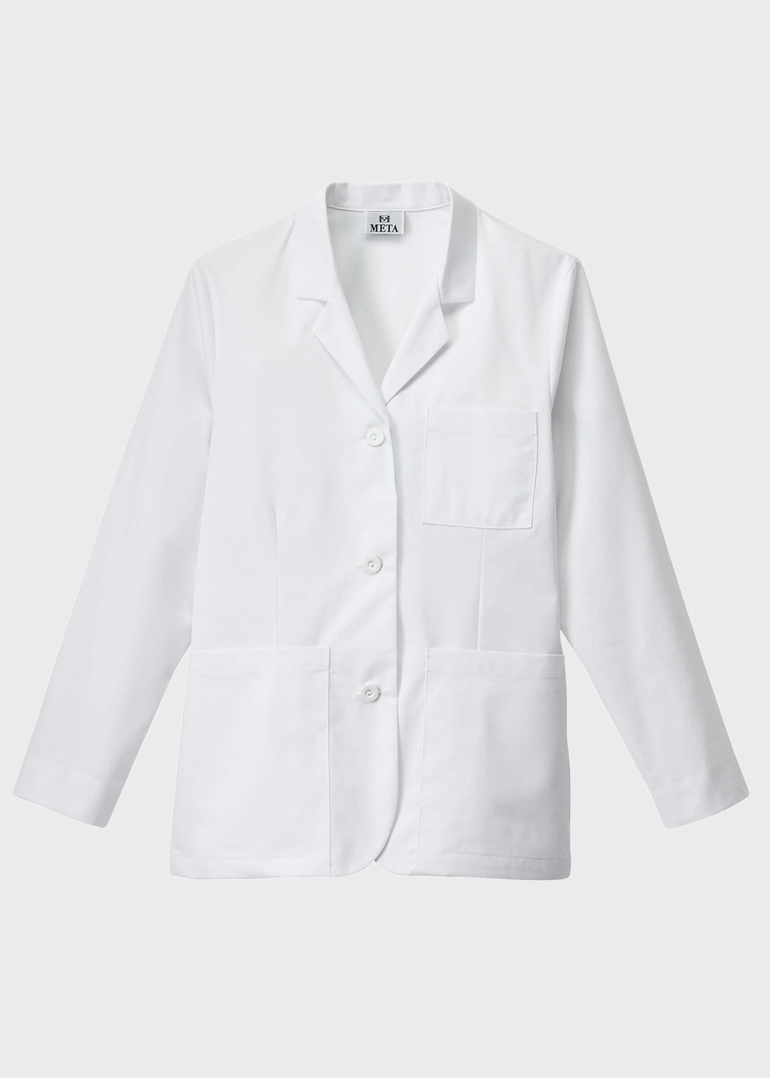 Ideal for Ipad holders, the Meta 28-inch consultation coat is loaded with features that you are bound to love. The missy-fit coat renders a shorter length to give you a stylized look. More so, it has a pocket with the perfect size for your device along with three inside patch pockets for more storage. Long sleeves for convenience, front darts for better shape, and center front button closure make this a must have in your wardrobe.