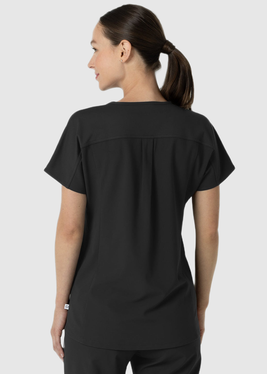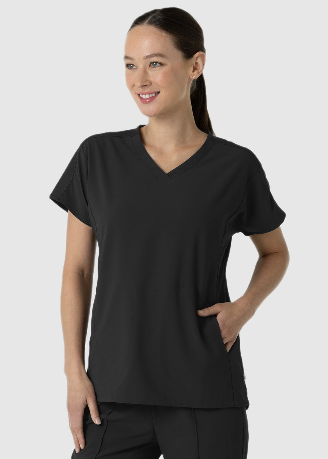 Wink Scrubs Renew Women's V-Neck Tunic Scrub Top combines comfort and style with its flattering V-neck design. Featuring two side pockets, dolman sleeves, and a yoga knit back yoke, this tunic offers ease of movement and practical functionality for your workday.