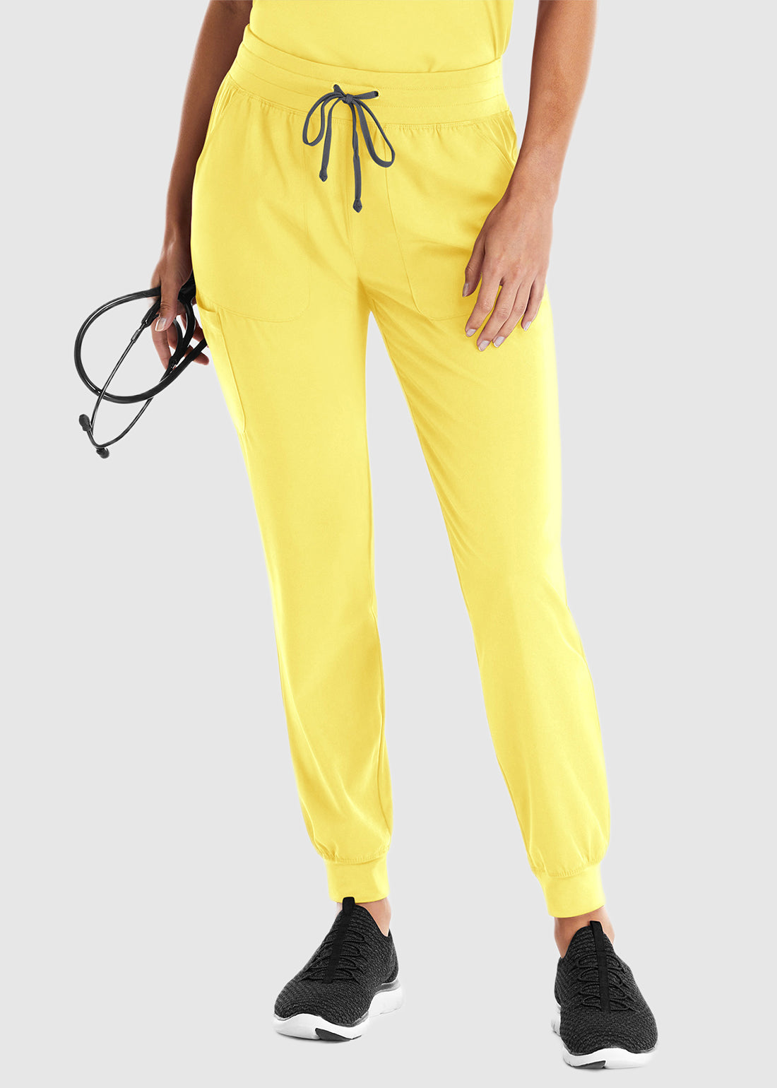 Athletic and impressive! The Matrix Impulse by Maevn Women's 8520 Contrast Jogger Scrub Pant comes with ribbed elastic waistband, contrast drawstring with grommets, two front slant pockets, two back patch pockets, single slant welt pocket, internal elastic band at leg hem and decorative top stitching throughout for your everyday professional needs.