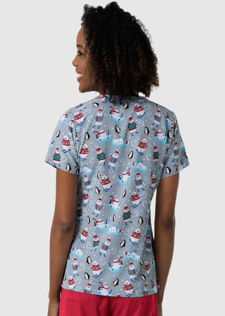 Zoe+Chloe Women's Performance V-Neck Print Scrub Top in Tis The Skison