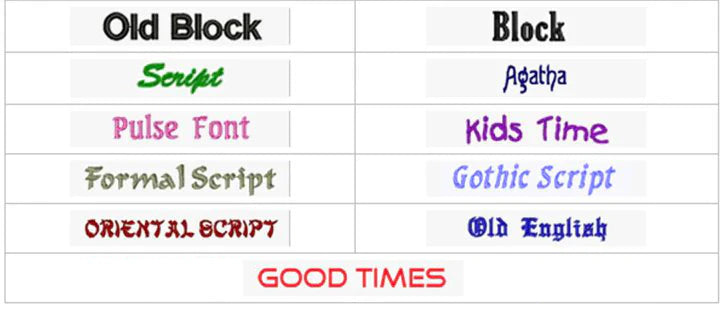 Embroider block of text with 25 characters. 12 popular embroidery fonts are available in 50+ colors.