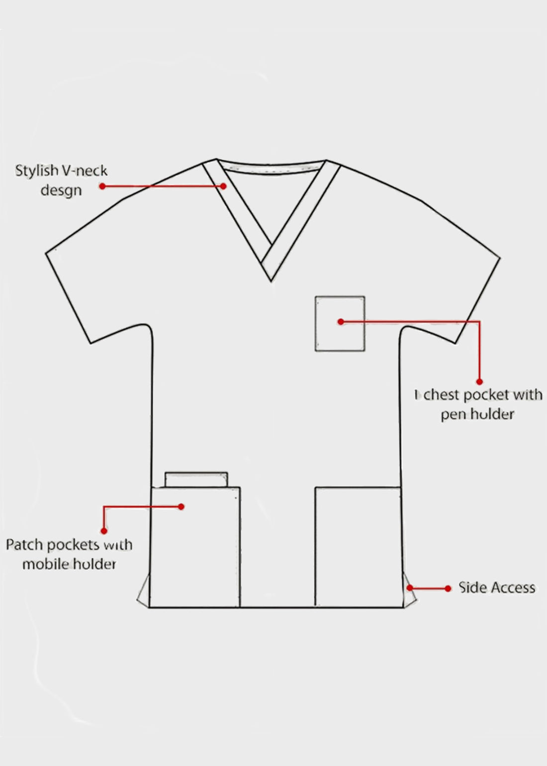 Look professional, feel great and enjoy functionality with HeedFit Unisex V-Neck Four Pocket Scrub Top. Tailored to perfection, the Heedfit scrub top is ideal for both men and women. The stylish scrub top comes with a V-neck for added style. Equipped with two roomy lower patch pockets with inner pocket in 1 patch pocket and a chest pocket with pen divider, carry all your essentials safely. Finished with side vents that aid in movement, enjoy functionality with comfort.