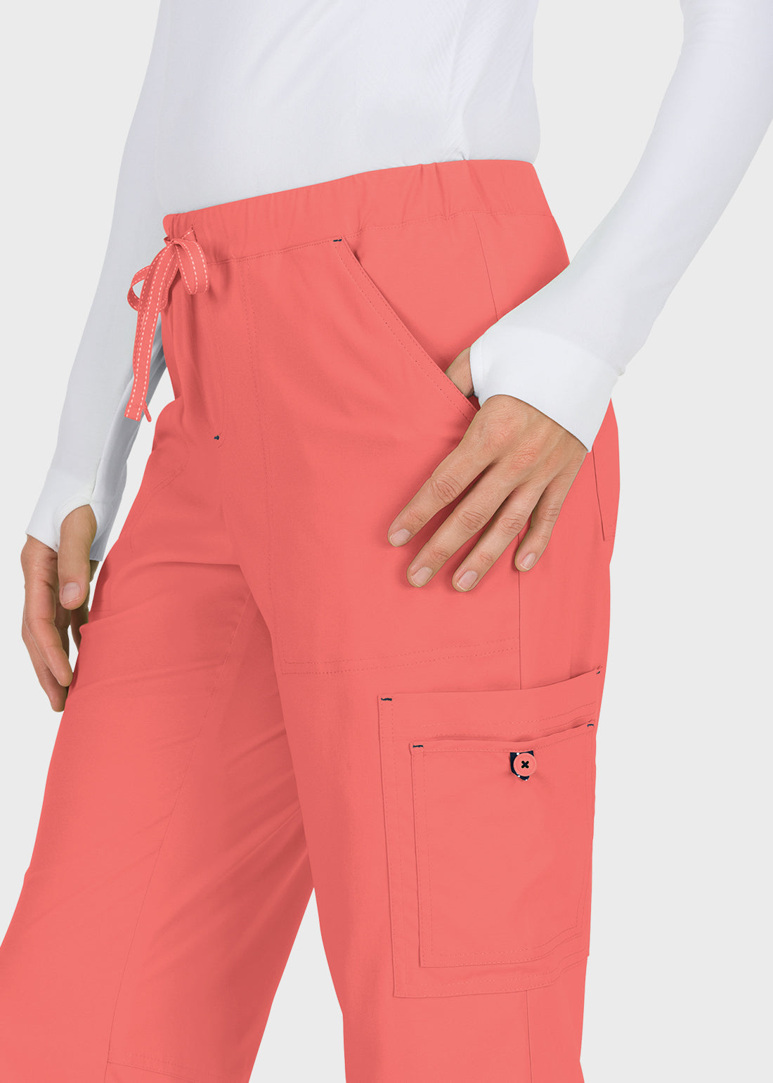 Be smart and feel great in Koi 731 Basics Womens Holly Straight Leg Scrub Pant. The low-rise waist with elastic waistband and drawstring tie is extremely comfortable. With contrast print facing, two front pockets, four side pockets including hidden cell phone pocket, and two back pockets, the pant offers premium value.